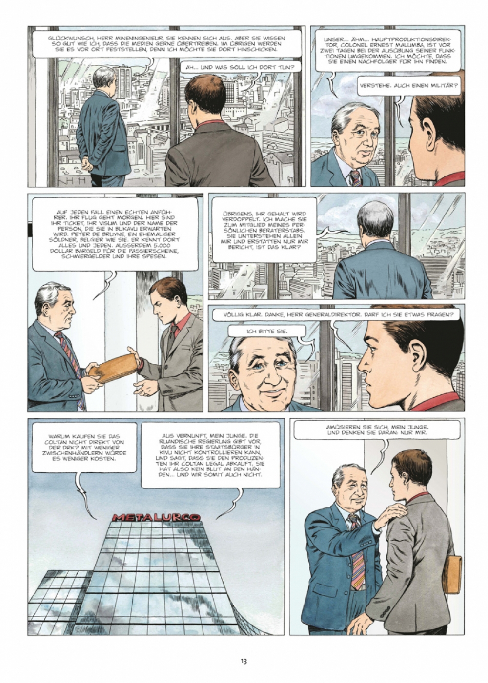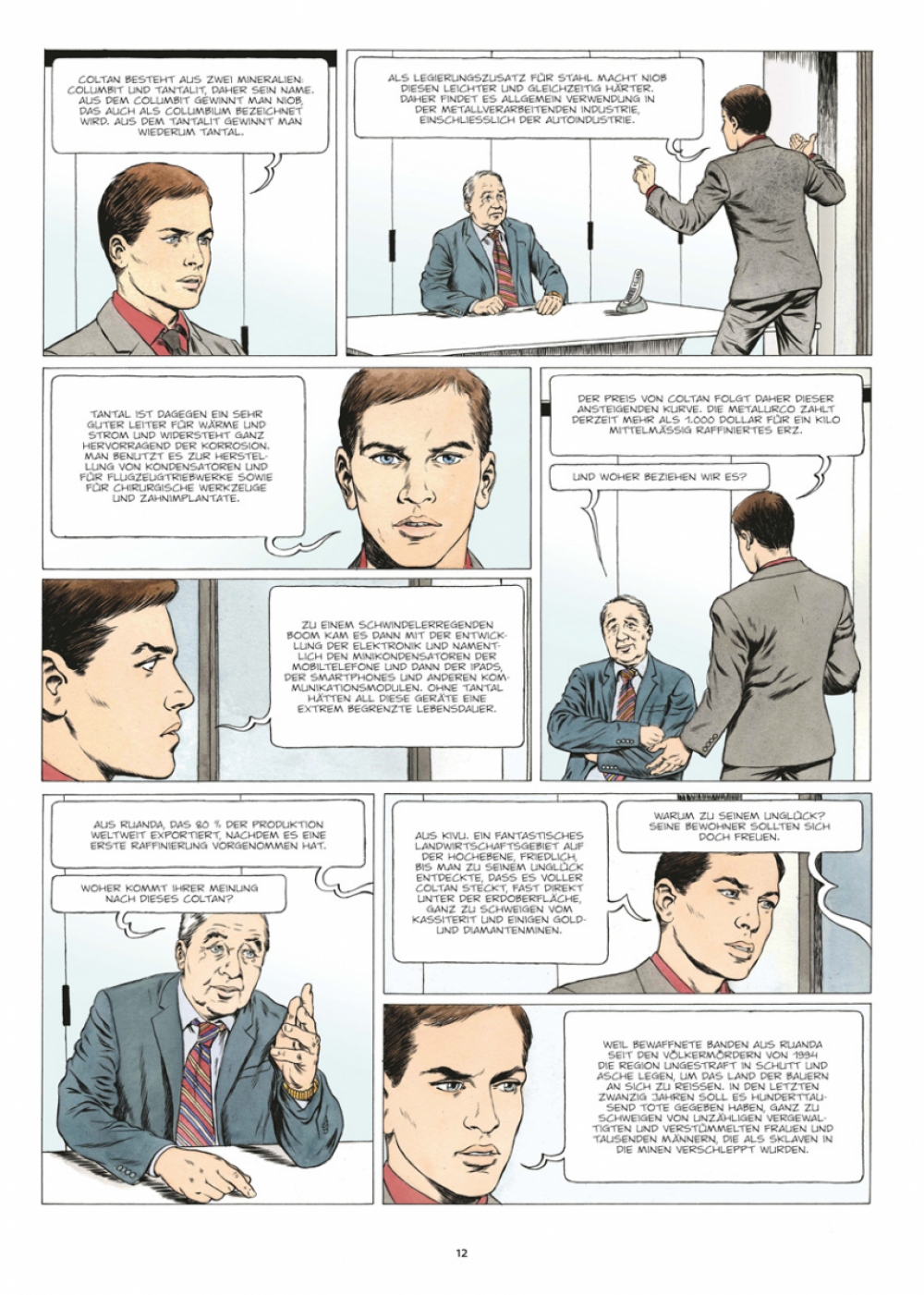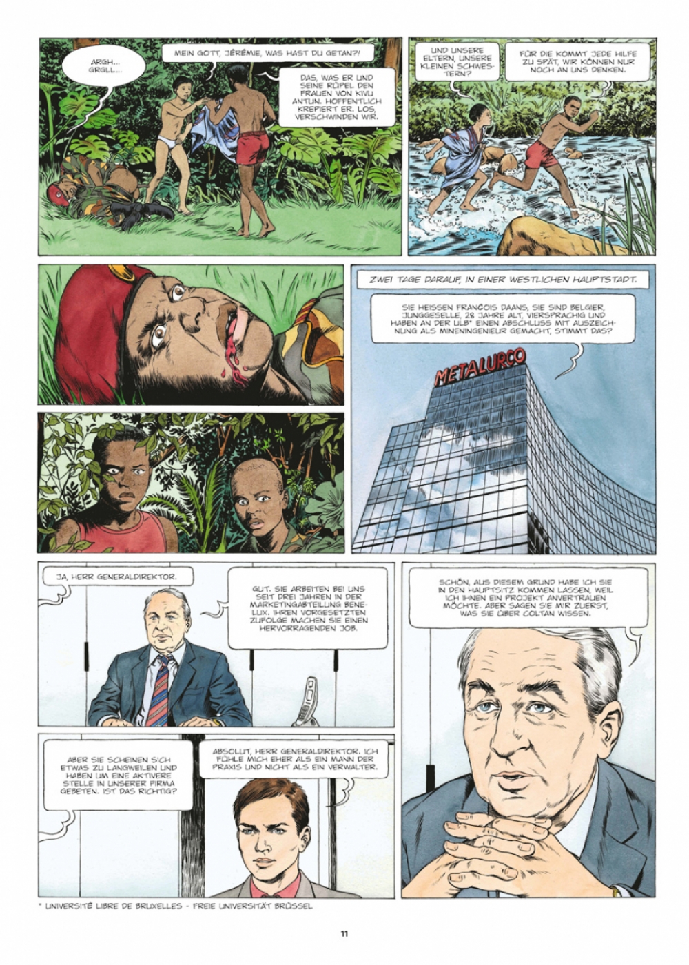 Mit dem Tatendrang der Jugend macht sich der Ingenieur François Daans im Auftrag seines Konzerns auf den Weg in die Kongo-Provinz Kivu. Dort soll er die Leitung der Coltangewinnung übernehmen, deren vormaliger Förderleiter unter mysteriösen Umständen verstorben ist. François ist wohl bewusst, dass Coltan – ein Mineral, ohne das unsere moderne Kommunikationstechnologie unvorstellbar wäre – im Kongo auf Kosten der Bevölkerung und zugunsten brutaler Milizen gefördert wird. Aber auf das Grauen, das ihn erwartet, und die schiere Verachtung jeglicher Menschlichkeit konnte ihn nichts vorbereiten...
