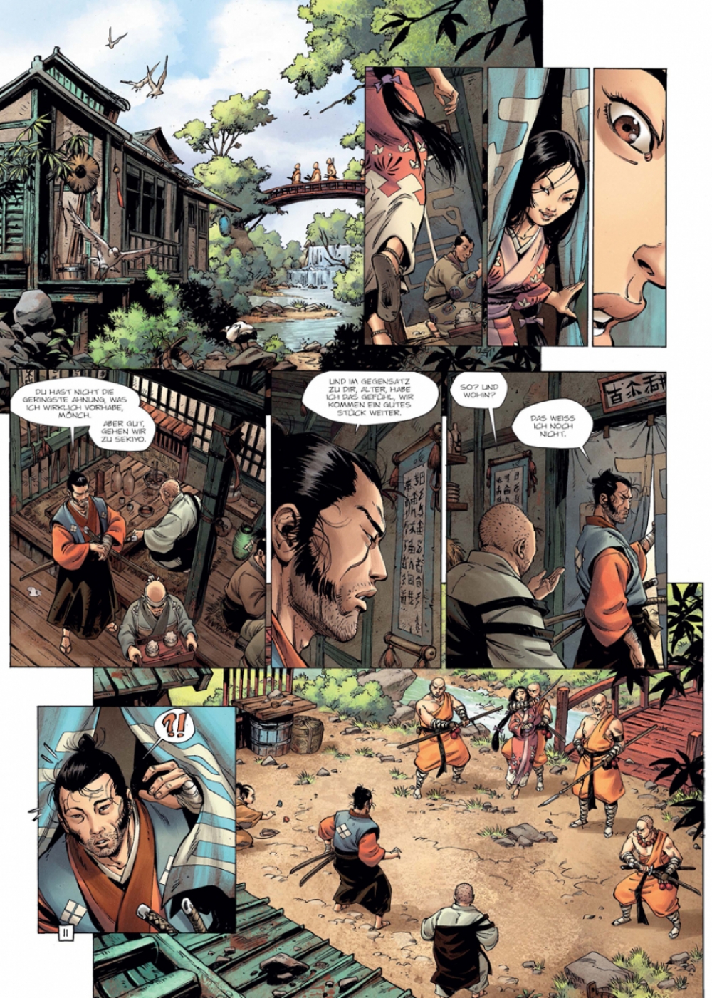 Im Japan zu Zeiten der Samurai bahnt sich ein folgenschweres Drama an: General Akuma, eine der einflussreichsten Persönlichkeiten im Reich, scheint fest entschlossen, den Kaiser zu verraten und selbst an dessen Stelle zu treten, obwohl beide ein düsteres Geheimnis eint: der dreizehnte Prophet. Derweil zieht der schweigsame Takeo, ein Ronin (ein Samurai ohne Herr) durch das Land, auf der Suche nach seiner Herkunft und begleitet lediglich von einem Schüler. Als sie jedoch einer Gruppe Reisender zu Hilfe kommen, die gerade von Räubern überfallen wird, ändert das ihr Schicksal grundlegend.