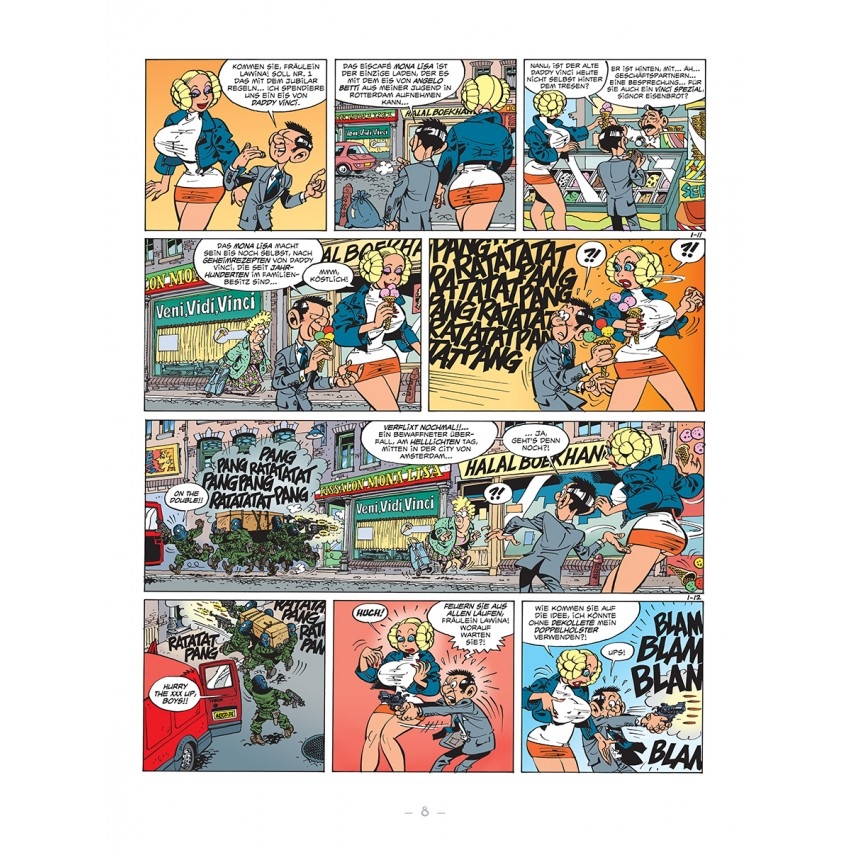 O. O. Eisenbrot ist der Mann für alle Fälle des niederländischen Geheimdienstes. Und angesichts der Überschaubarkeit seines Heimatlandes wenn nicht der einzige, so doch auf jeden Fall der beste. Egal, ob es darum geht, illegale Machenschaften zu stoppen, einen fiesen Diktator zu ärgern oder wahnsinnige Verschwörer aus dem Verkehr zu ziehen – Eisenbrot alias Agent 327 ist stets zur Stelle und sorgt dafür, dass das kleine Königreich hinterm Deich wie auch der Rest der Welt ruhig schlafen können. Es sei denn, Olga Lawina kommt ihm in die Quere, (Ex-)Kollegin aus der Schweiz, multitalentiert, um nicht zu sagen, in vielerlei Hinsicht überragend. Martin Lodewijks irrwitzige Agenten-Parodie rettet die Welt – und hat dabei sogar den Fall des Eisernen Vorhangs unbeschadet überstanden.
