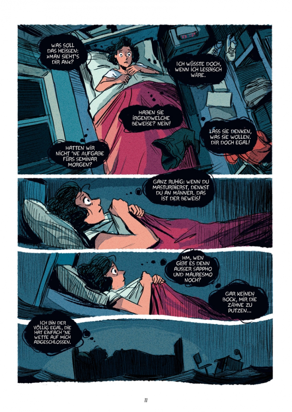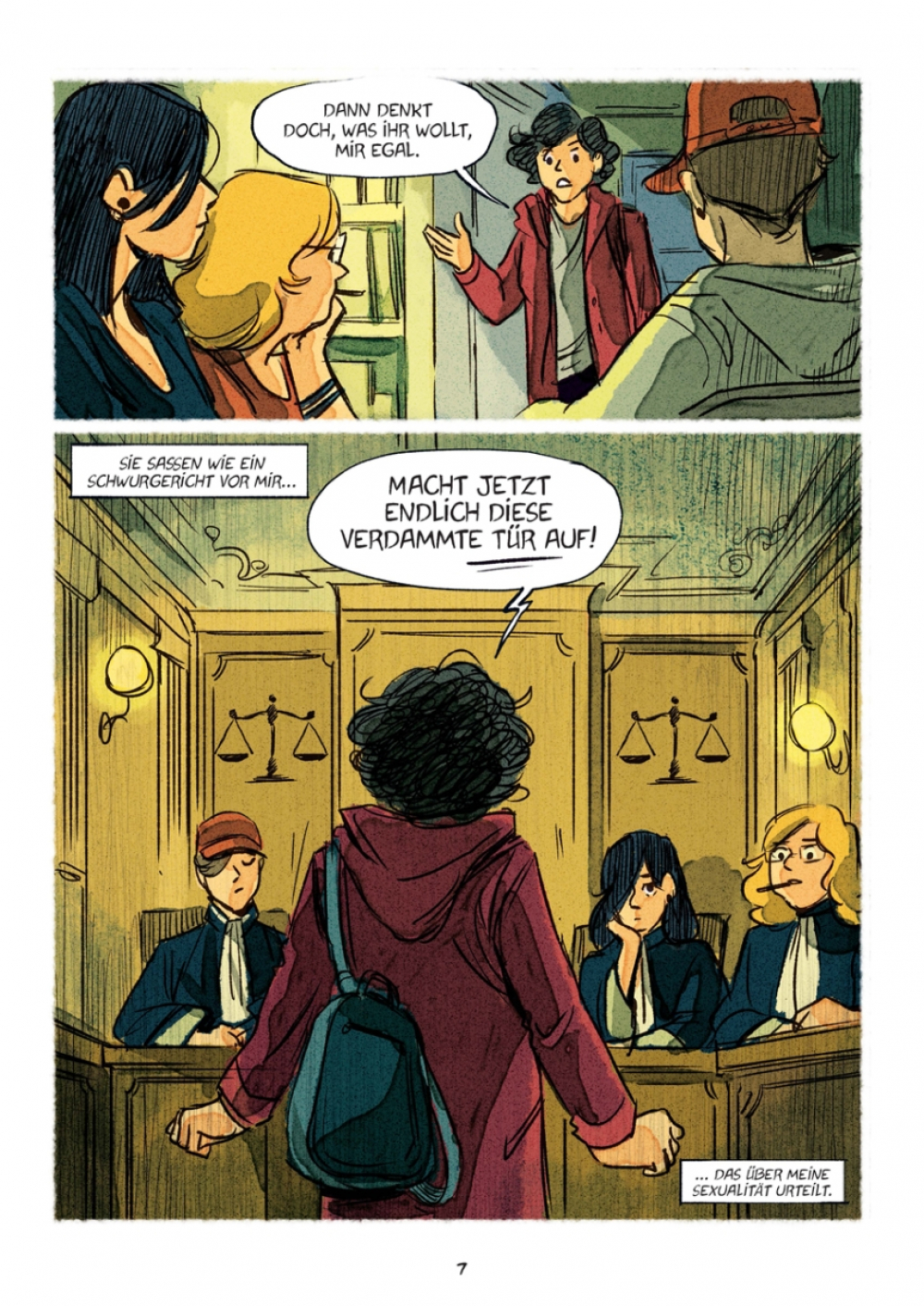 Mit »Coming In« erzählt die Journalistin Élodie Font die Geschichte des schwierigen Weges zu ihrer Identität als homosexuelle Frau. Humorvoll und mit entwaffnender Ehrlichkeit legt sie dar, wie alte Gedankenmuster auf moderne Weltanschauungen prallen und wieso das Coming-out nur eine Seite der Medaille ist. Carole Maurel (»Magdas Apokalypse«) übersetzt diese intimen Offenbarungen in ausdrucksstarke Bilder, die sich spielend zwischen zwingender Dramatik und befreiender Leichtigkeit bewegen.