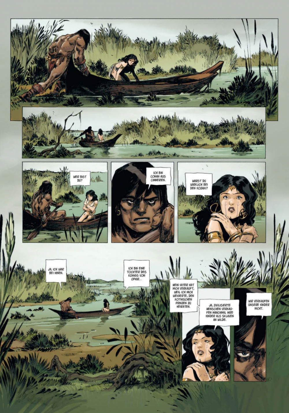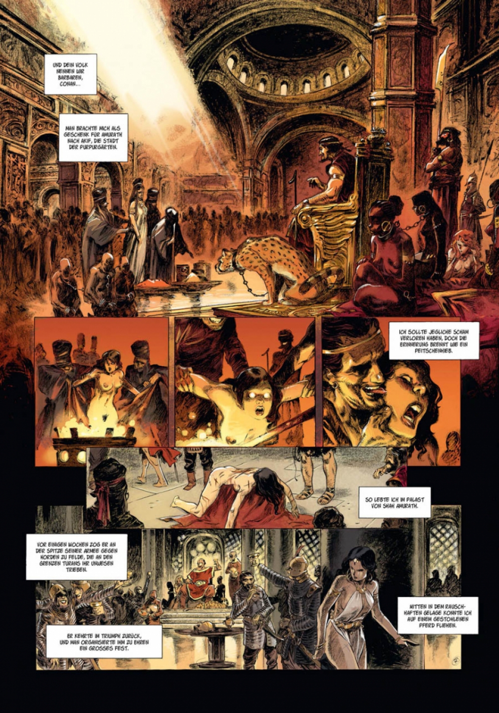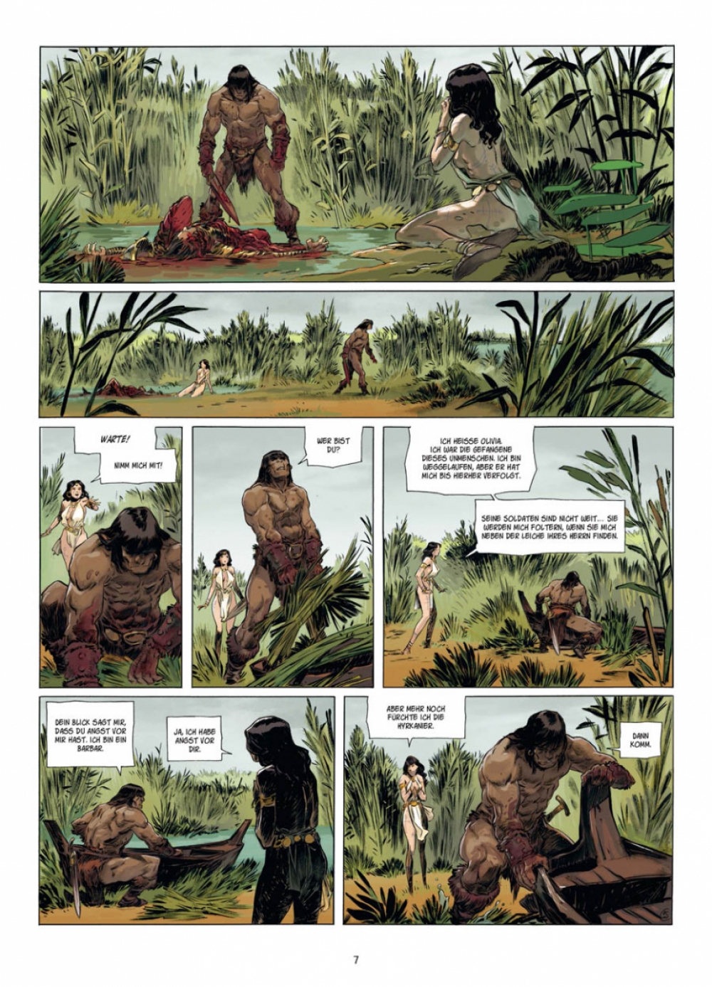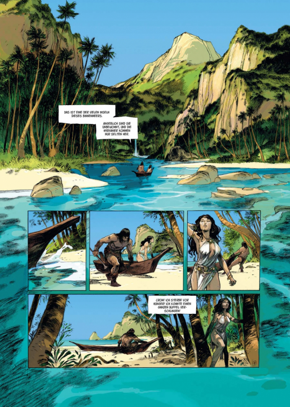 Auf der Flucht vor den Vasallen des Generals Shan Amurath geraten Conan und die von ihm befreite Sklavin Olivia auf eine unbewohnte Insel. Sie machen dort Halt, um wieder zu Kräften zu kommen. Aber ein uralter Fluch liegt auf dem Eiland, und des Nachts wird es von grauenhaften Ungeheuern heimgesucht. Aus dieser Klemme werden Conan und Olivia nur gemeinsam entkommen können. Conan ist zurück. Wilder. Stärker. Schöner. Mächtiger als je zuvor. Seit Jahrzehnten betreibt der Barbar aus Cimmerien sein blutiges Handwerk in Comics aus den Häusern Marvel und Dark Horse. Aber diese Adaptionen der Novellen von Robert E. Howard sind aus einem anderen Holz geschnitzt: Die besten Szenaristen und Zeichner Frankreichs haben sich zusammengefunden, um dem Gott von Sword & Sorcery Tribut zu zollen. Jeder Band umfasst eine abgeschlossene Geschichte, basierend auf einem Originalwerk von »Conan«-Schöpfer Robert E. Howard, und beinhaltet umfangreiches Bonusmaterial zur Entstehung des Mythos »Conan« und der Comic-Adaptionen.