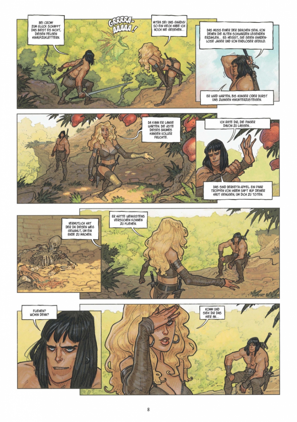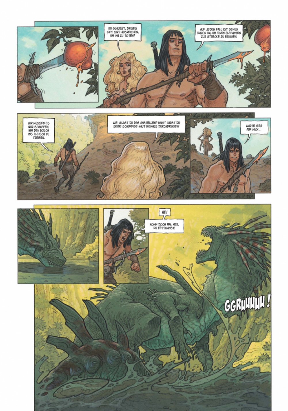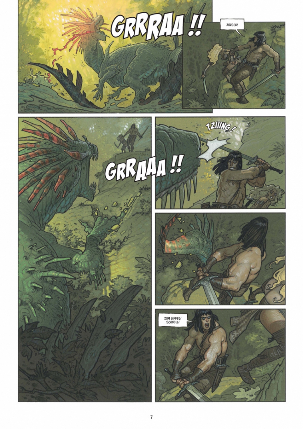 Conan ist zurück. Wilder. Stärker. Schöner. Mächtiger als je zuvor. Seit Jahrzehnten betreibt der Barbar aus Cimmerien sein blutiges Handwerk in Comics aus den Häusern Marvel und Dark Horse. Aber diese Adaptionen der Novellen von Robert E. Howard sind aus einem anderen Holz geschnitzt: Die besten Szenaristen und Zeichner Frankreichs haben sich zusammengefunden, um dem Gott von Sword & Sorcery Tribut zu zollen. Legendäre Geschichten, bearbeitet von Größen wie Morvan (»Herkules«) und Alary (»Silas Corey«) und Gabella/Jean (»Das Einhorn«). So offenbaren sich frische Perspektiven auf Conan und seine gefährliche Welt und die klassischen Werke erstrahlen in neuem Glanz.