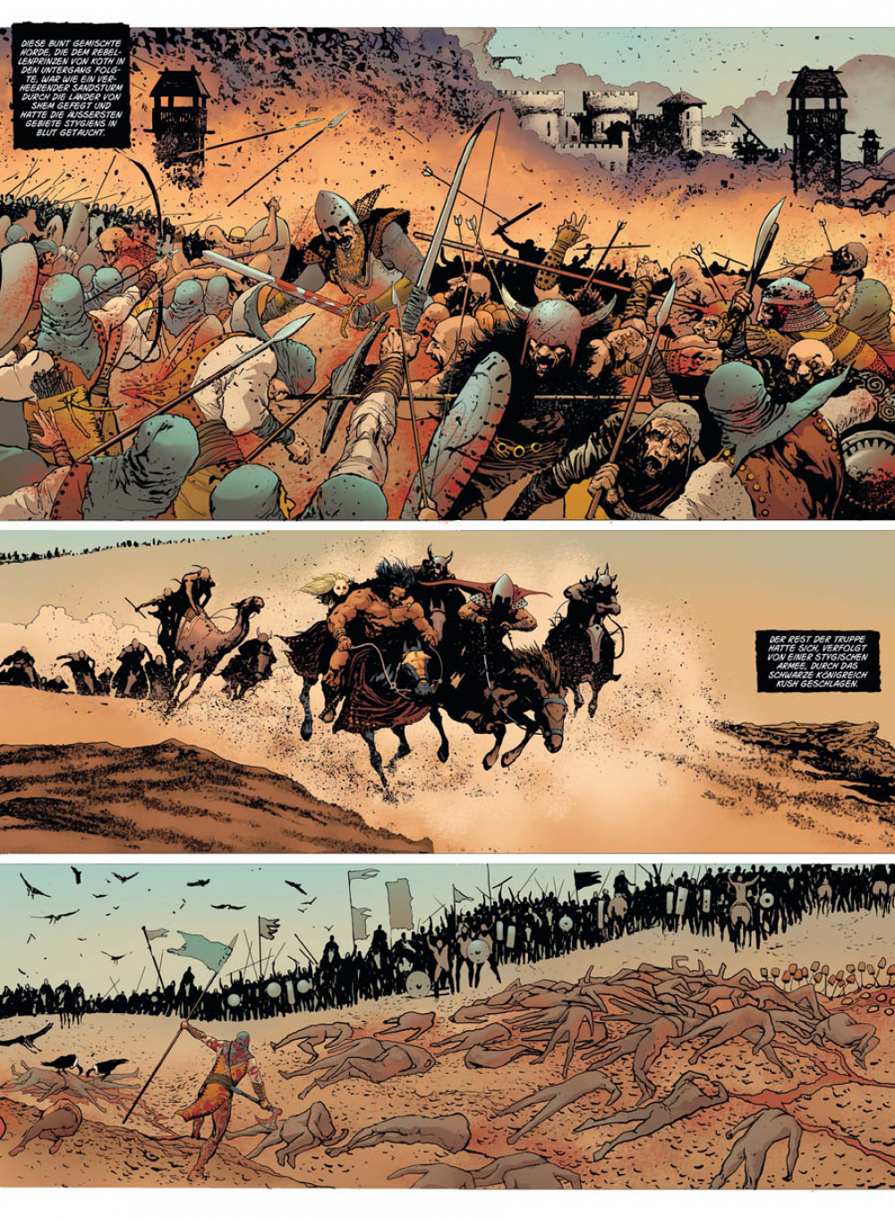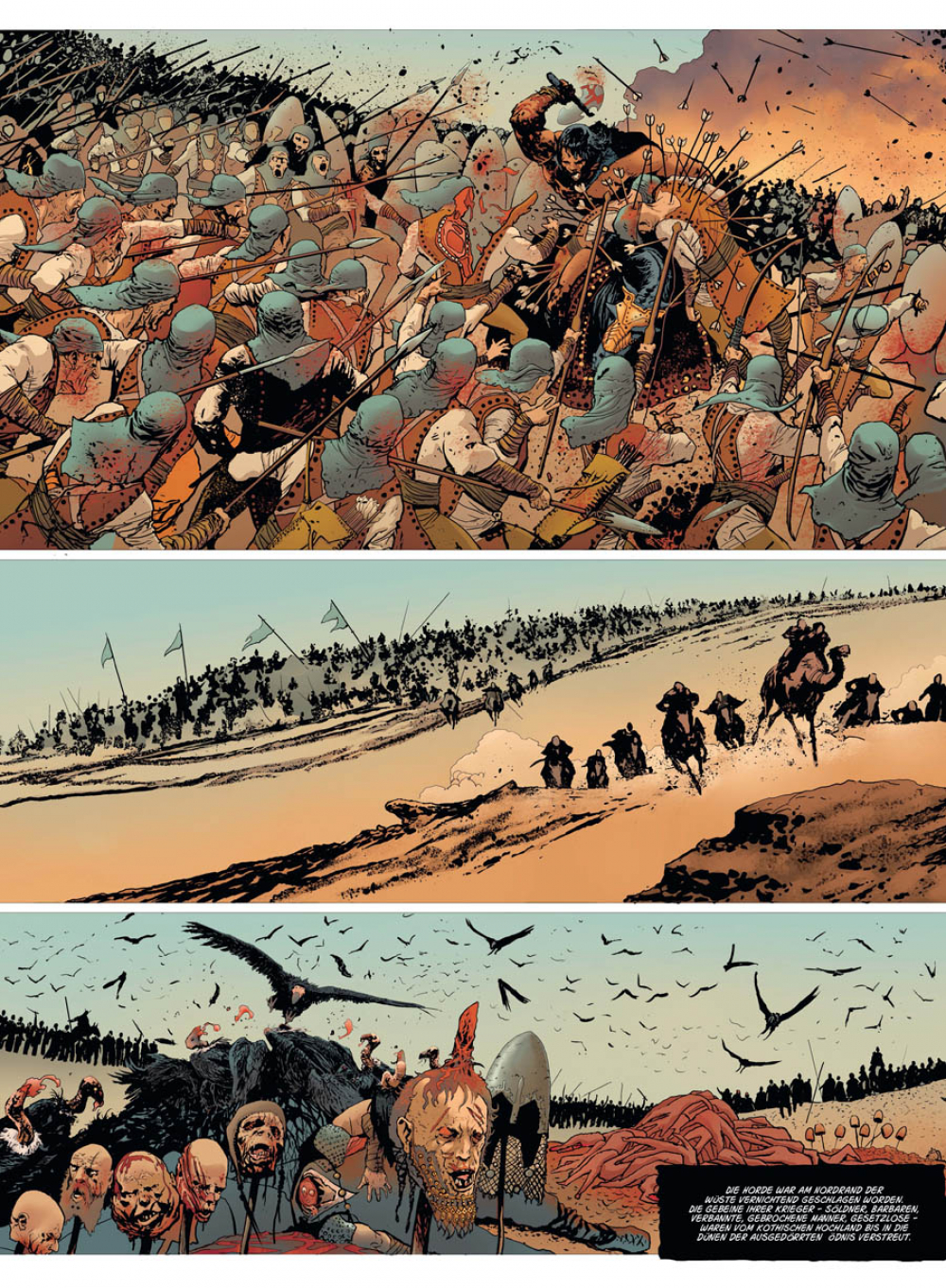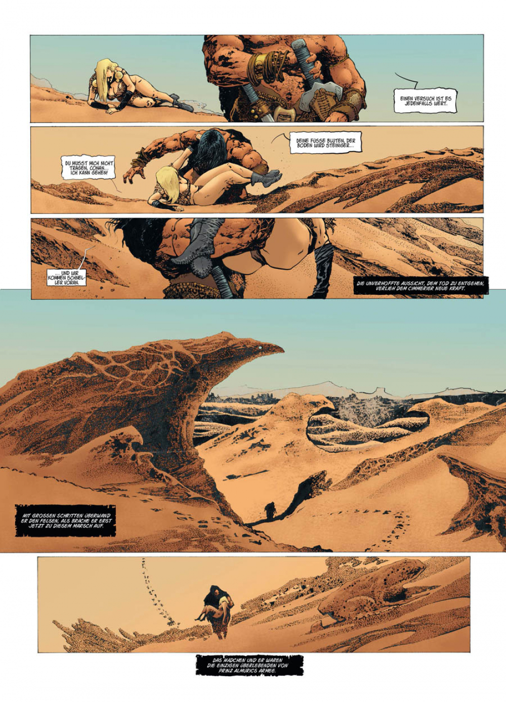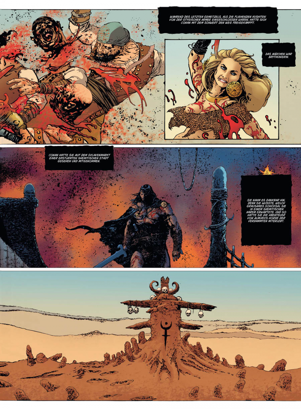 Conan ist zurück. Wilder. Stärker. Schöner. Mächtiger als je zuvor. Seit Jahrzehnten betreibt der Barbar aus Cimmerien sein blutiges Handwerk in Comics aus den Häusern Marvel und Dark Horse. Aber diese Adaptionen der Novellen von Robert E. Howard sind aus einem anderen Holz geschnitzt: Die besten Szenaristen und Zeichner Frankreichs haben sich zusammengefunden, um dem Gott von Sword & Sorcery Tribut zu zollen. So offenbaren sich frische Perspektiven auf Conan und seine gefährliche Welt und die klassischen Werke erstrahlen in neuem Glanz.