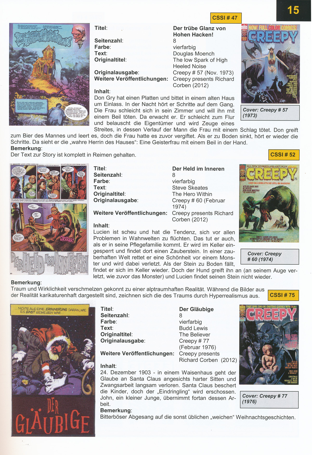 Die lückenlose Darstellung seiner in Deutschland erschienenen Geschichten war bisher einzigartig. Jede Story wird vorgestellt und die bibliographischen Daten werden erstmals vollständig präsentiert. Zahlreiche Artikel und Portraits machen dieses Nachschlagewerk unverzichtbar für Comic-Fans.