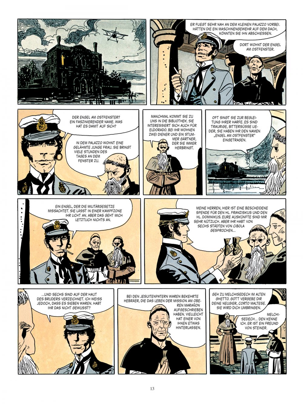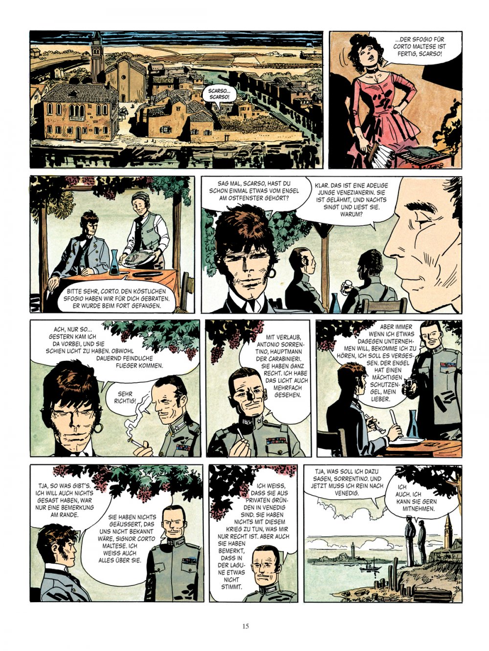 Ausgerechnet in den schlimmsten Zeiten des 1. Weltkriegs bereist Corto Maltese Europa, oft hart an den Frontverläufen entlang. Zugleich taucht der unheldische Held ein in Traum- und Sagenwelten Irlands und Cornwalls. So entsteht ein vielstimmiges Konzert des alten Kontinents. Darin spielen mit: Feen und Druiden, Panzerfäuste und Rabengekrächz, Harfenklang und Nitroglyzerin.