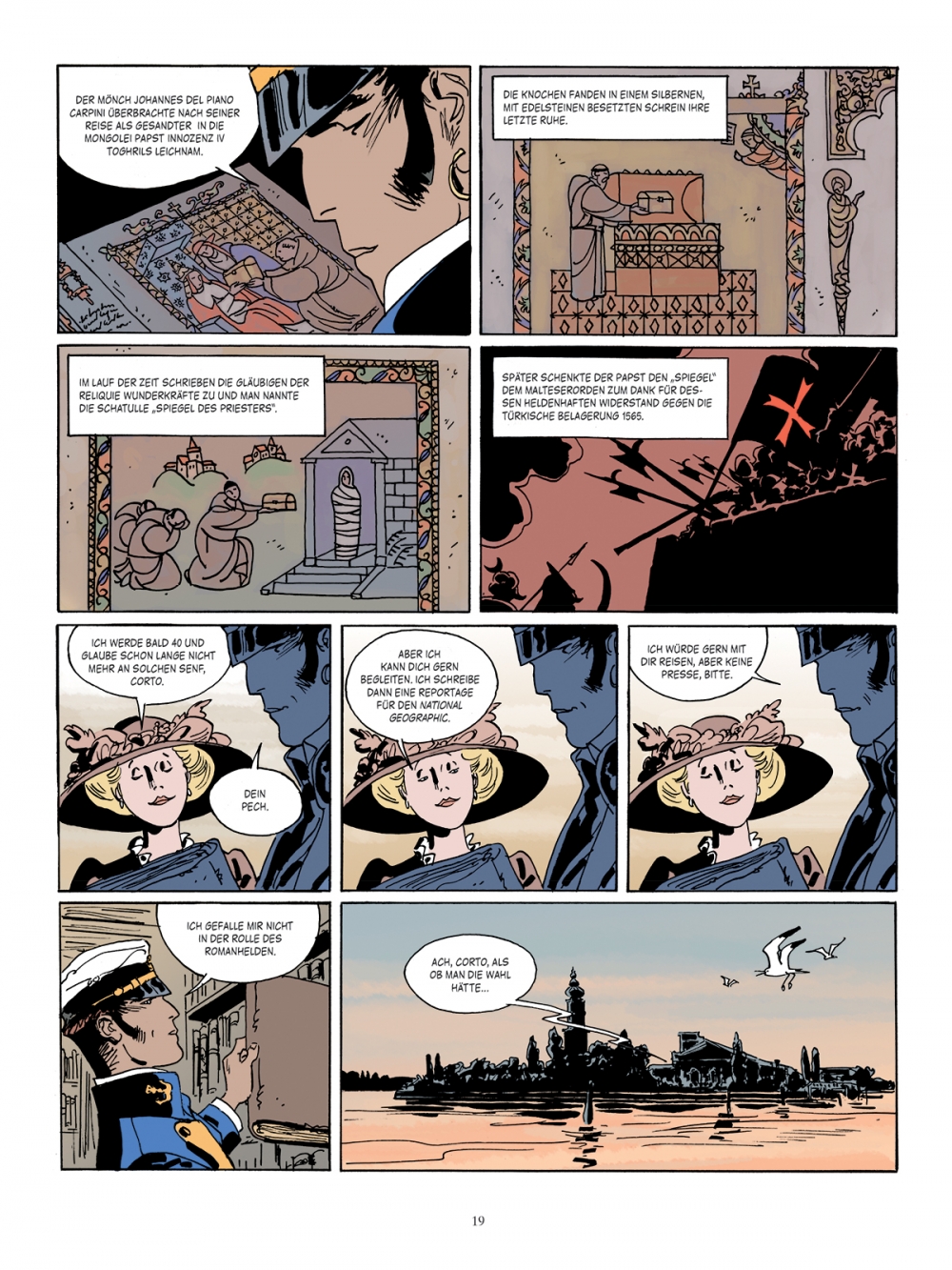 Aber Corto ist, wie immer, auf der Suche nach einem sagenhaften Schatz. Dieses Mal ist es der Magische Spiegel eines Priesterkönigs, der um 1100 lebte. Dieser „Bruder Johannes“ war in Wirklichkeit ein mongolischer Khan, und der Spiegel befindet sich angeblich auf Malta, in Cortos Heimat...