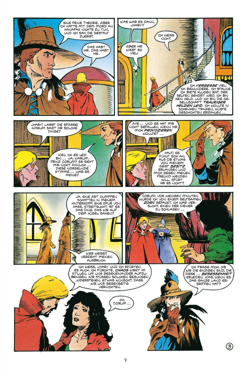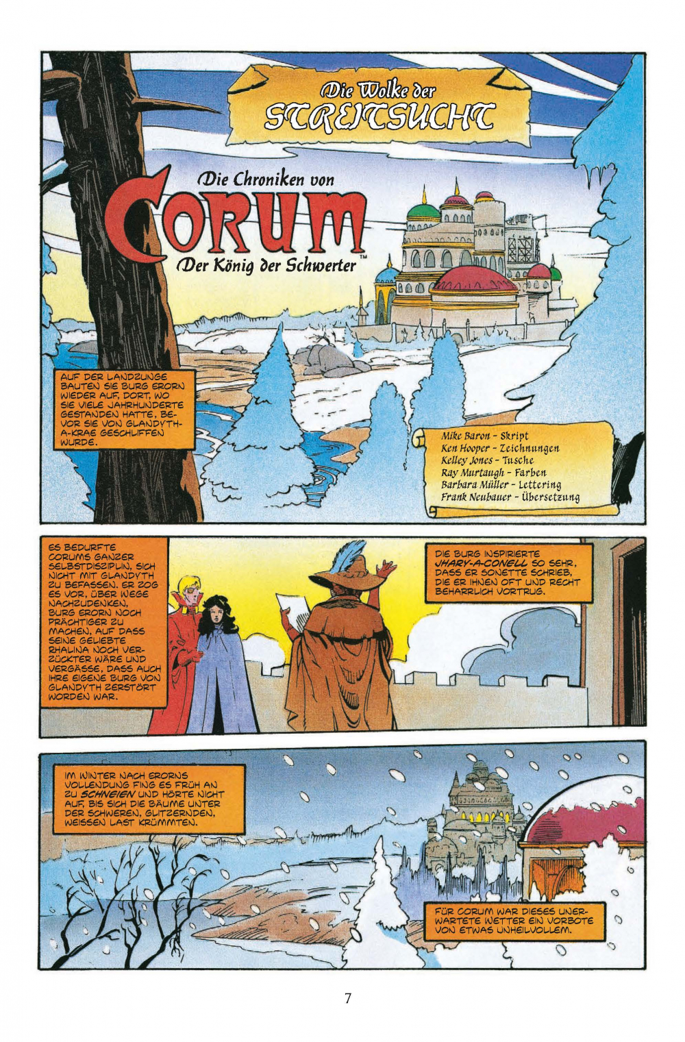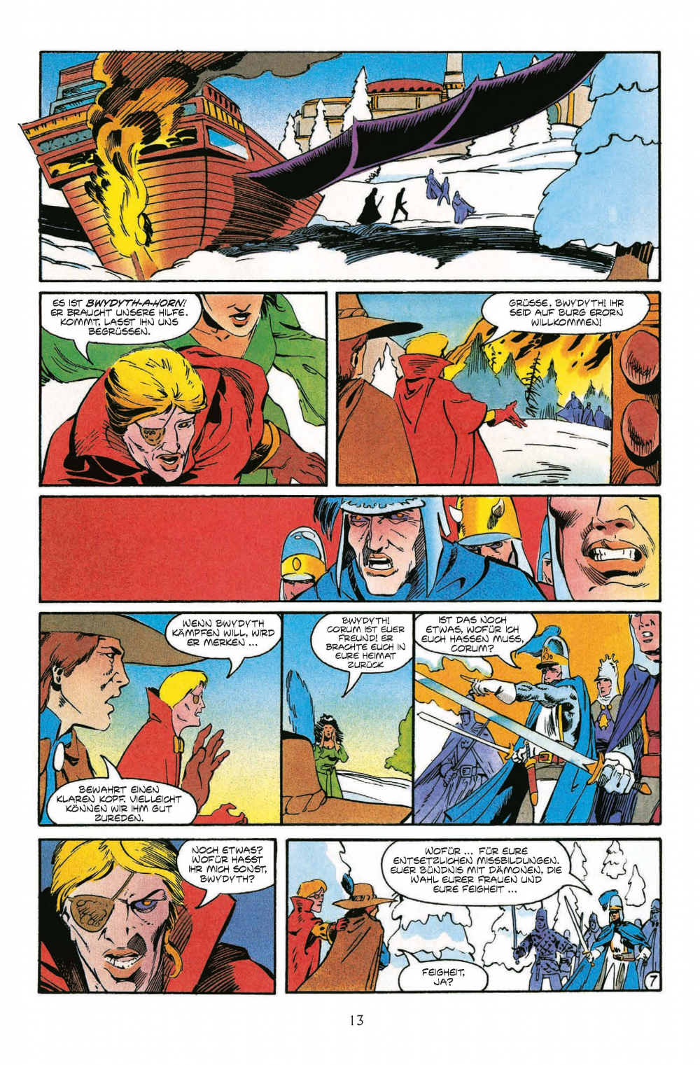 Zwischen Reinkarnation und Rache Der unaufhörliche Kampf zwischen Ordnung und Chaos, der auf den 15 Ebenen der Realität gewütet hat, nähert sich dem Ende. Corum reist zusammen mit den anderen Inkarnationen des Ewigen Helden - Elric und Erekosë - zu den letzten fünf Ebenen der Erde, um den Herrn des Chaos und den König der Schwerter, Mabelode, zu besiegen. Es ist auch eine Gelegenheit für Corum, Rache an Glandyth-a-Krae zu nehmen – dem Mann, der seine Familie brutal abgeschlachtet hat. Die von Michael Moorcock geschaffene epische Saga geht weiter und das Artwork des dritten CORUM-Bands wurde diesmal von Ken Hooper (AQUAMAN, INDIANA JONES) kreiert.