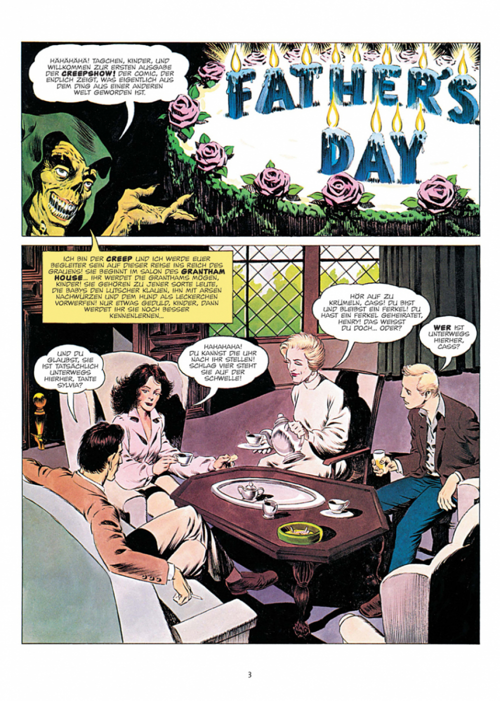 Willkommen, Freunde des gepflegten Grusels! Willkommen in unserem Kabinett des Zähneklapperns, unserer gemütlichen Ecke des Schreckens, in unserer ganz privaten »Creepshow«! Fünf unheimliche Geschichten haben wir mitgebracht, um sie geneigten Lesern zur Lektüre darzubieten. Es gibt Merkwürdiges und Denkwürdiges, Schauriges und Abscheuliches, Unerhörtes und schier Unvorstellbares zu entdecken. Wonach es eure verwöhnten Augäpfel auch gelüsten mag: Schreiberling Stephen King und Tuschekleckser Bernie Wrightson garantieren beste Unterhaltung!