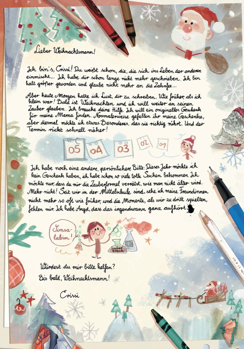 Crissi, Line und Erica sind schon voller Vorfreude, denn bald ist Weihnachten! Und auch wenn sie in der Schule viel zu tun hat, geht Crissi natürlich einem neuen Fall nach: Sandra ist Buchbinderin, und ihr Laden ist voll mit alten Büchern, die sie repariert. Nur ein Buch repariert sie nie… warum nur? Hat sie es einfach übersehen? Und was sind die fünf Schätze, die in Sandras Leben eine so große Rolle spielen? Gemeinsam mit ihren Freundinnen will Crissi das Geheimnis lösen. Helfen sie der jungen Frau damit vielleicht sogar?