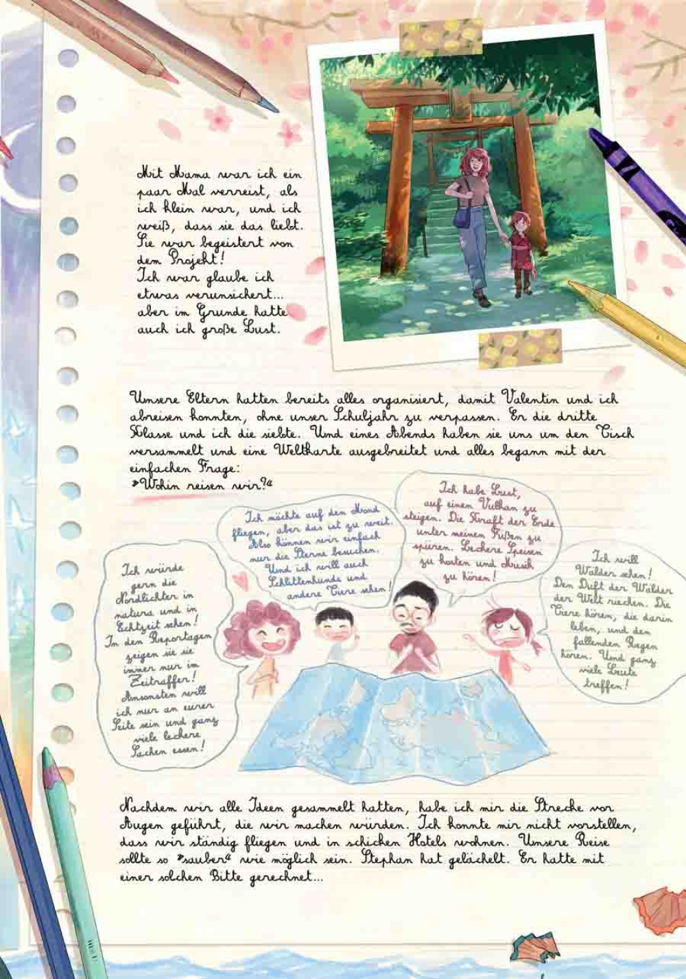 Crissi träumt davon, Romanautorin zu werden und übt das Schreiben fleißig in ihren Tagebüchern. Ihr Lieblingsthema sind und bleiben Menschen, vor allem Erwachsene, die sie genau beobachtet, um ihre vielen Geheimnisse zu ergründen. Woher dieses Interesse stammt, hat sie erst vor Kurzem herausgefunden. Viel Zeit, um über ihre Entdeckung nachzudenken, bleibt ihr nicht, denn Crissi und ihre Familie begeben sich auf eine lange Reise um die ganze Welt: Europa, Afrika, Südamerika und sogar die Sahara liegen auf ihrer Route! Auf dieser Reise wird Crissi sich ihren inneren Drachen stellen, die Kraft der Nächstenliebe und des Teilens erfahren und sogar ein neues Bewusstsein für den Schutz der Umwelt entwickeln. Und durch ihre Tagebücher sind wir wieder dabei!