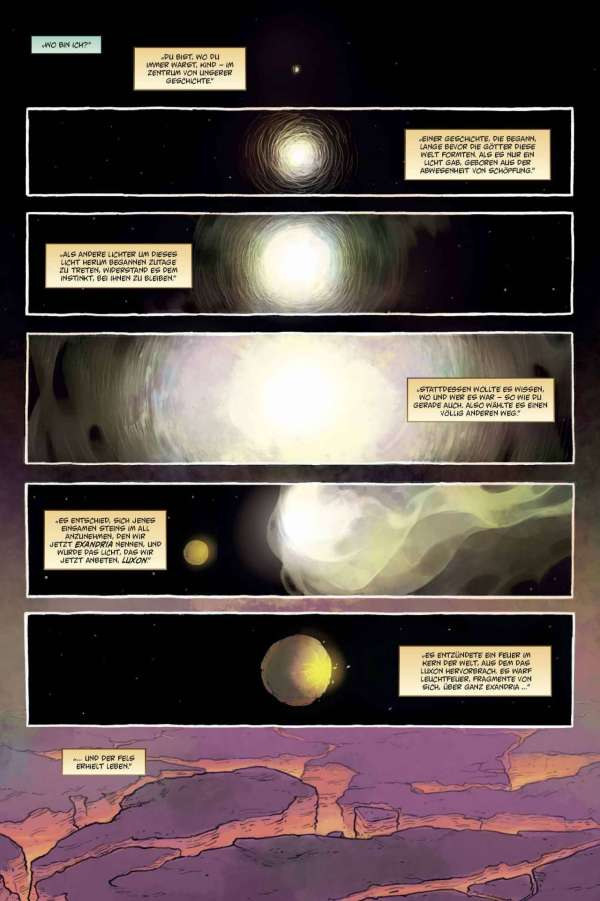 Leylas Kryn, die strahlende Königin, hat zahlreiche Leben damit verbracht, das Luxon, das Urlicht, zusammenzusetzen. Mit ihrer ewigen Geliebten Quana an ihrer Seite ist sie entschlossen, diese überirdische Macht zu nutzen und den Völkern ihres Imperiums ein goldenes Zeitalter zu bringen.