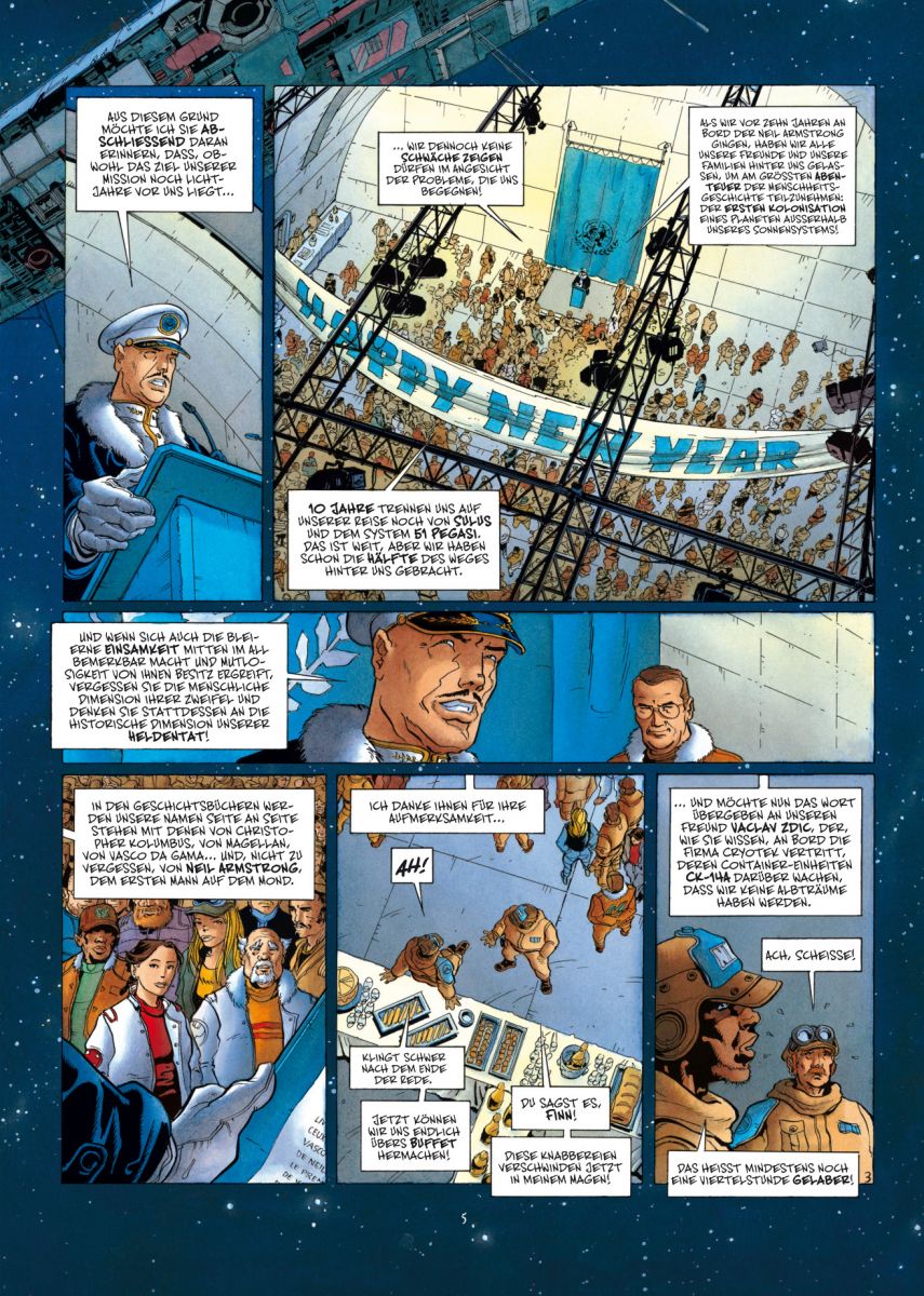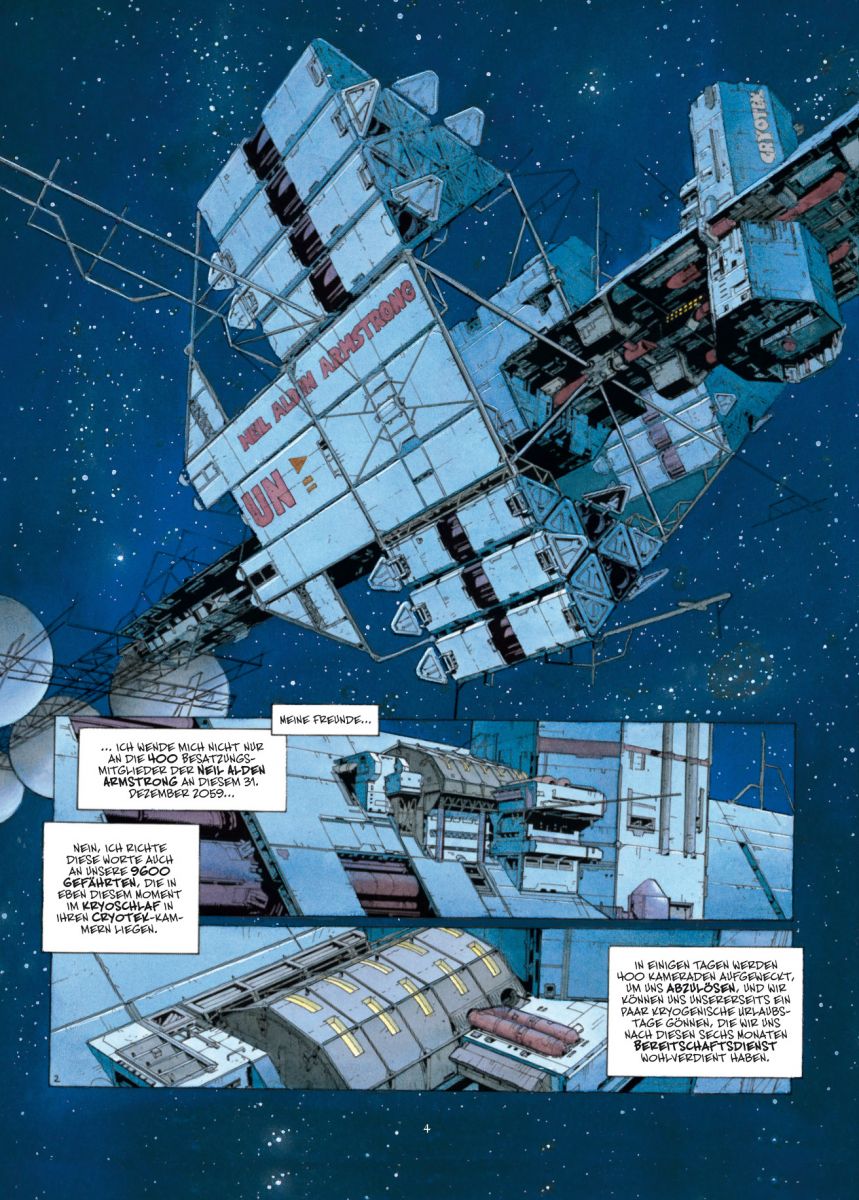 Die stolze U.N.S.S. Neil Alden Armstrong ist das erste Schiff, das die Erde zur Kolonisierung eines entlegenen Planeten auf den Weg schickt. An Bord ruhen 9600 Männer und Frauen im tiefen Schlaf in ihren Kryokammern, um die Reisedauer von 20 Jahren zu überstehen, während ein 400 Mann starkes Team über sie wacht.