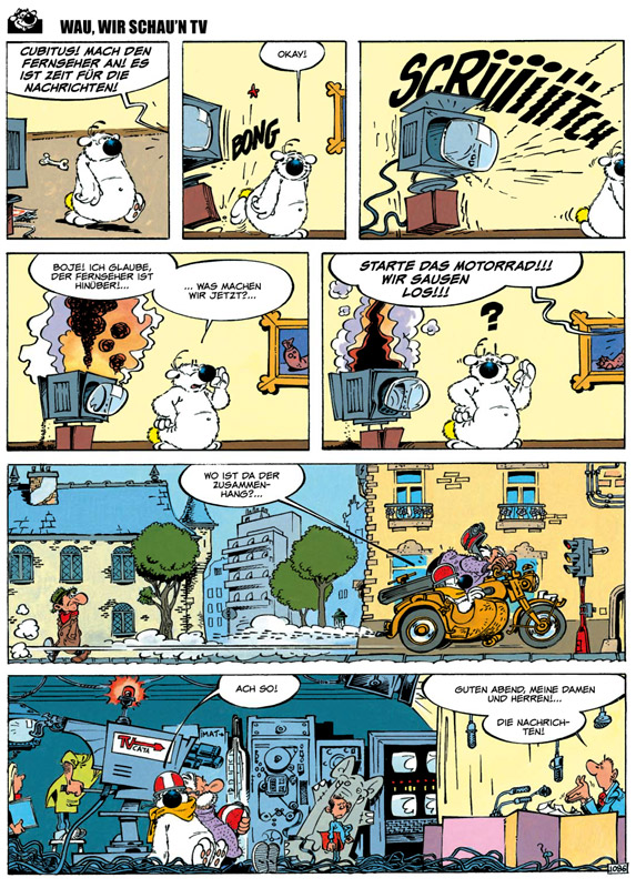In diesem Album muss Cubitus so einiges verkraften: einen Arztbesuch, einen Doppelgänger, ein kaputtes Fernsehgerät, die Rückkehr zur Schule, einen Einbruchsversuch, einen defekten Staubsauger und diverse Gartenarbeiten. Doch auch Herr Bojenberg und Kater Paustian haben mit Maler- und Küchenutensilien sowie einem arg verschmutzten Badezimmer, einem Festbankett und einem sinkenden Boot zu kämpfen...