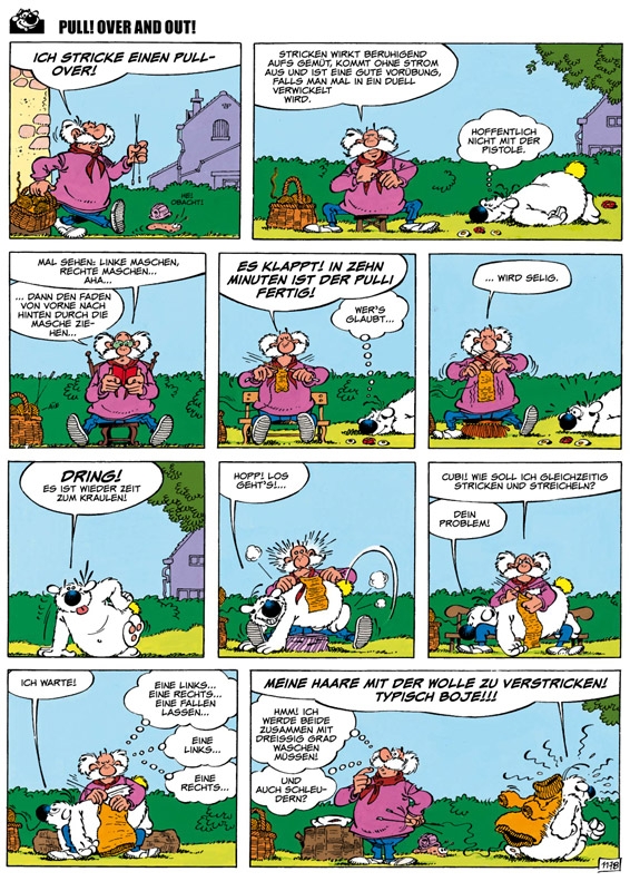 In diesem Band bekommt es Cubitus nicht nur mit dem Fleischermeister, der Müllabfuhr und dem Tierarzt zu tun, sondern er muss sich auch mit diversen Wetterkapriolen und Haarproblemen herumschlagen. Zum Glück lassen ihn seine tierischen Freunde nicht im Stich. Und während Boje sich der Morgentoilette oder sportlichen Aktivitäten widmet, bleibt im Keller noch genug zu tun. Die Katastrophen lauern nun mal überall…