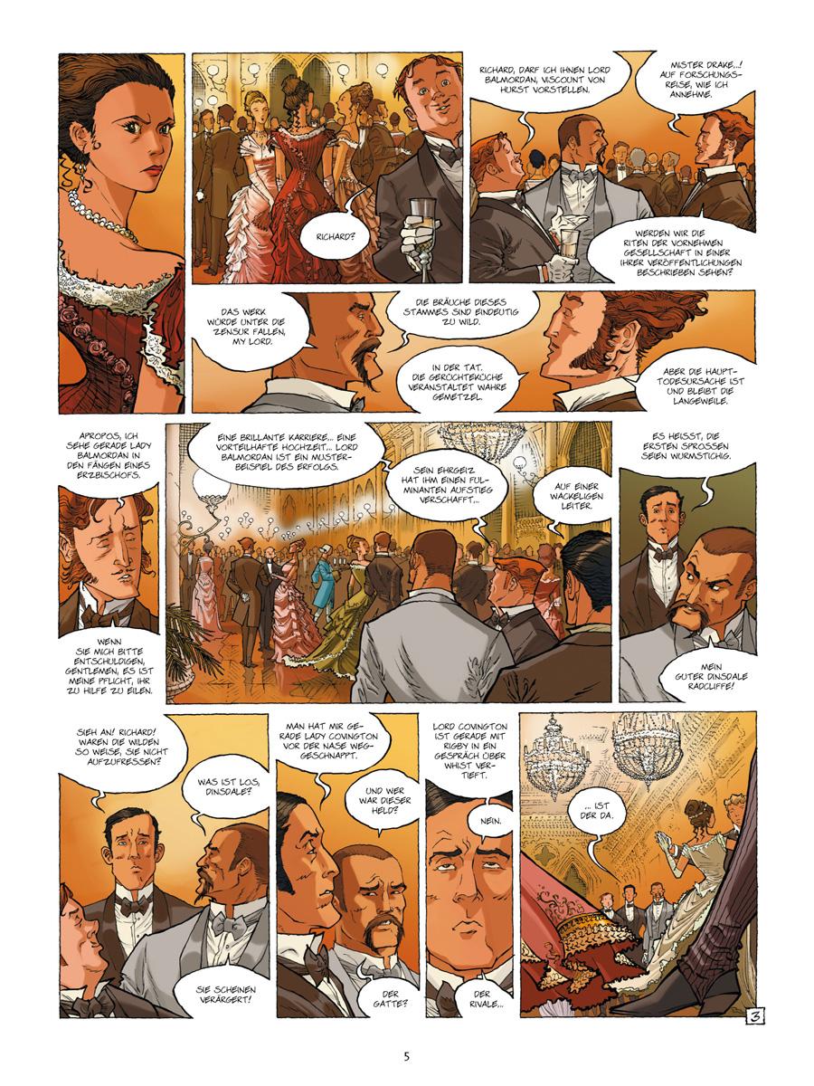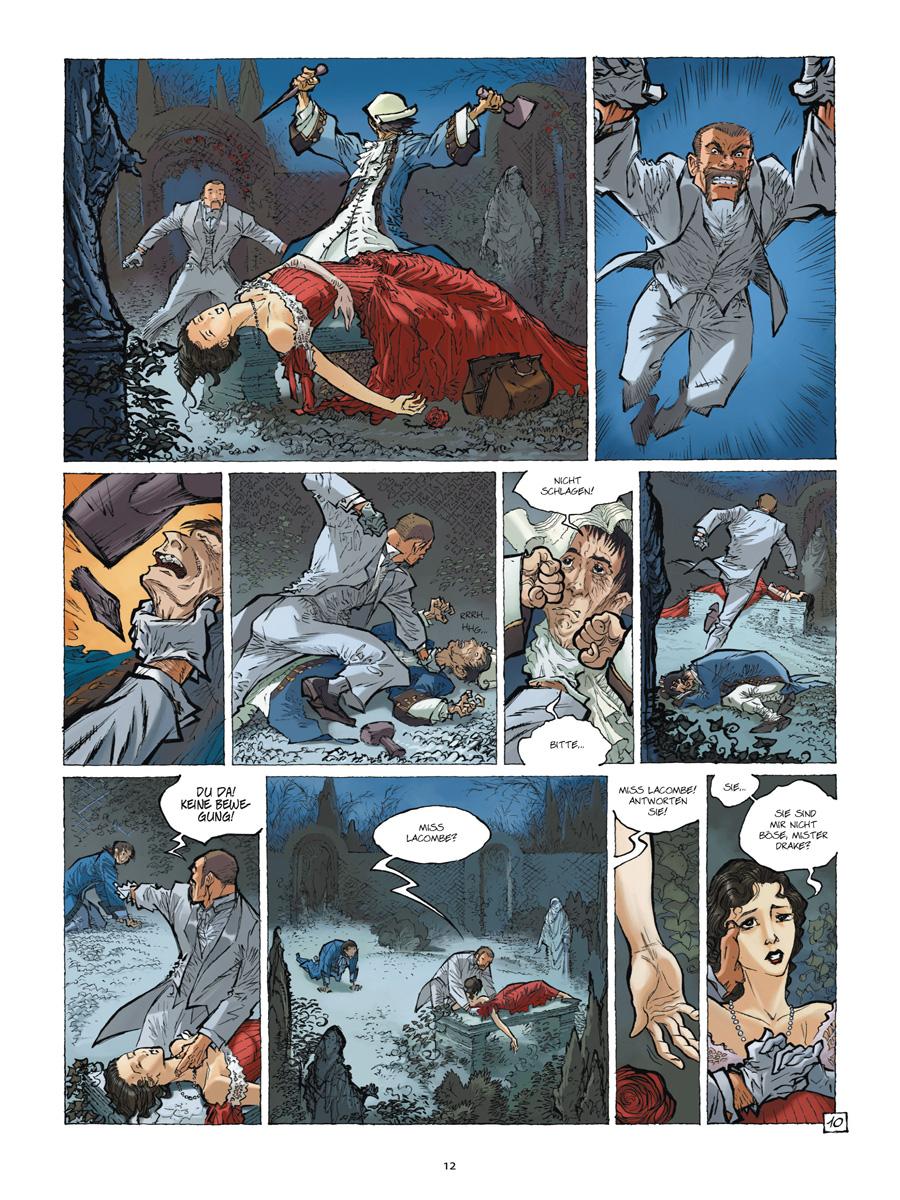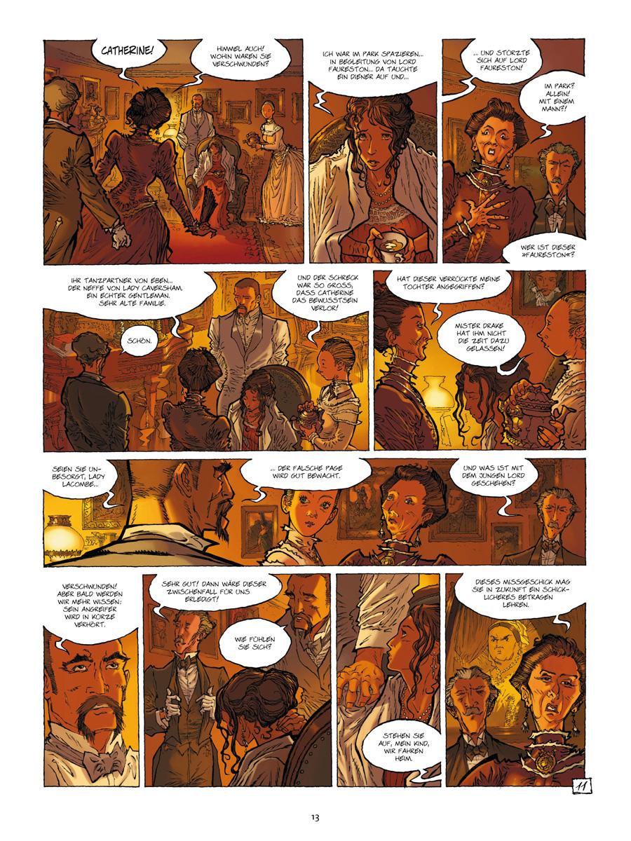 Nach der Rückkehr von einer Expedition besucht der Forscher Richard Drake regelmäßig die Clubs und Ballsäle der feinen viktorianischen Gesellschaft. Dort verliebt er sich in Miss Catherine Lacombe, eine charmante Lady von äußerst energischem Charakter. Auch der verführerische Lord Faureston hat ein Auge auf die junge Frau geworfen, doch den finsteren Dandy umgibt eine geheimnisvolle Aura. Sollte Catherine in Gefahr sein? Zumindest Mister Jones ist davon überzeugt, ein obskurer Bankangestellter, der im Schutz der Nacht als Vampirjäger unterwegs ist!