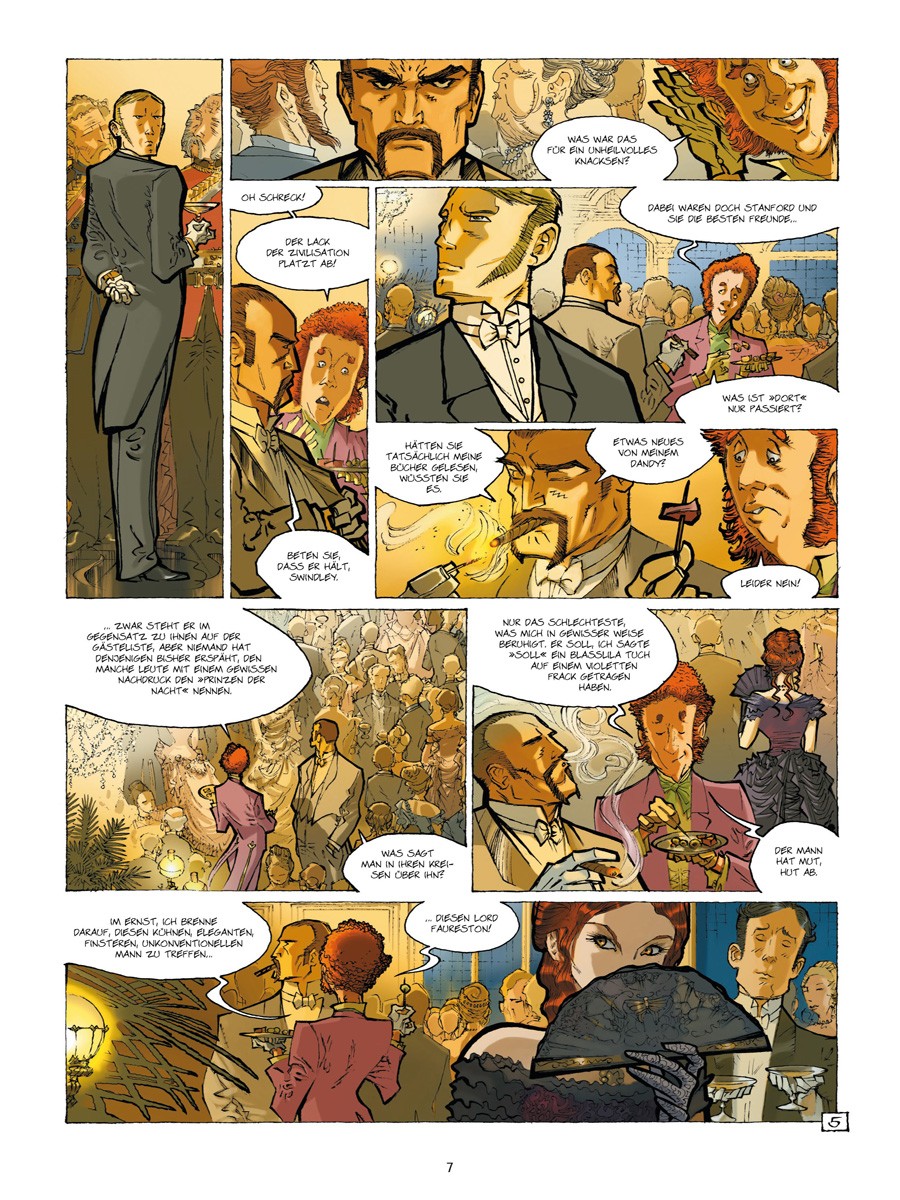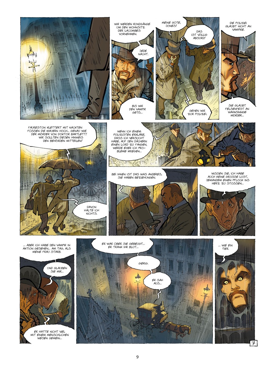 Nach der Rückkehr von einer Expedition besucht der Forscher Richard Drake regelmäßig die Clubs und Ballsäle der feinen viktorianischen Gesellschaft. Dort verliebt er sich in Miss Catherine Lacombe, eine charmante Lady von äußerst energischem Charakter. Auch der verführerische Lord Faureston hat ein Auge auf die junge Frau geworfen, doch den finsteren Dandy umgibt eine geheimnisvolle Aura. Sollte Catherine in Gefahr sein? Zumindest Mister Jones ist davon überzeugt, ein obskurer Bankangestellter, der im Schutz der Nacht als Vampirjäger unterwegs ist!