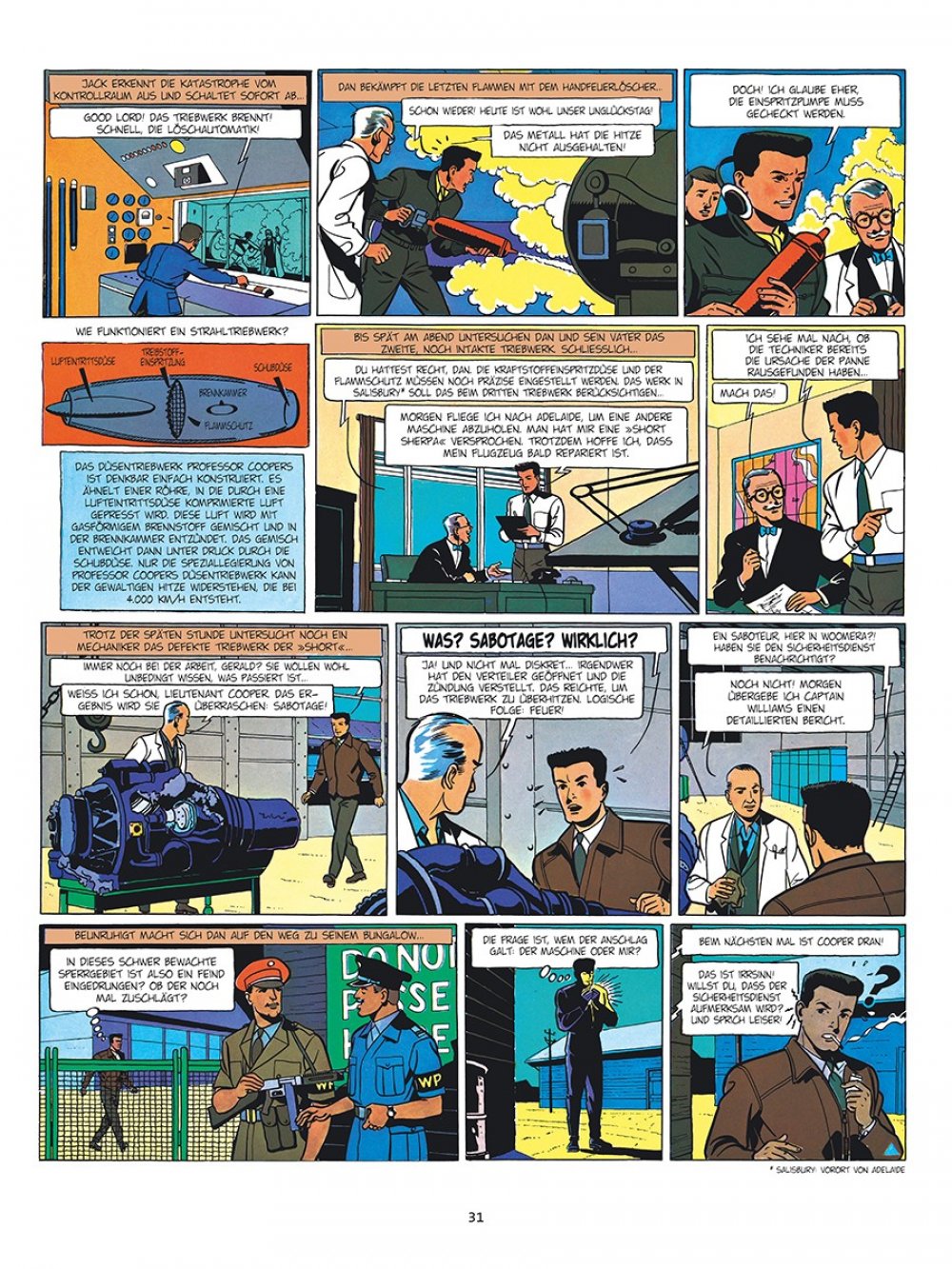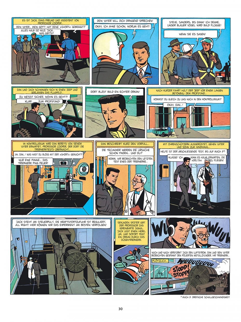 Er zählt zu den drei großen, klassischen Flieger-Assen der franko-belgischen Comics: Major Dan Cooper, Testpilot der Royal Canadian Air Force. In seiner fast vierzigjährigen Laufbahn hat er nahezu alles geflogen, was sich länger als drei Sekunden in der Luft halten kann. Und er hat Abenteuer nicht nur überall auf der Welt, sondern sogar darüber hinaus im Weltall erlebt – im Kampf mit Verbrechern, Verrätern, aber auch den Tücken der Technik. Dies ist das Verdienst vor allem eines Mannes: Albert Weinberg (1922-2011). Ende 1954 brachte er den Major und Luftfahrtingenieur zum ersten Mal an den Start, und bis 1992 sorgte er nicht nur für die sorgfältigen, technisch anspruchsvollen Zeichnungen, sondern er hat auch (fast) alle der spannenden Storys selber geschrieben. Lediglich bei drei von insgesamt 41 Episoden stieg Jean-Michel Charlier mit ins Comic-Cockpit, der ansonsten für die Fliegerkonkurrenten Buck Danny und Michel Tanguy zuständig war.