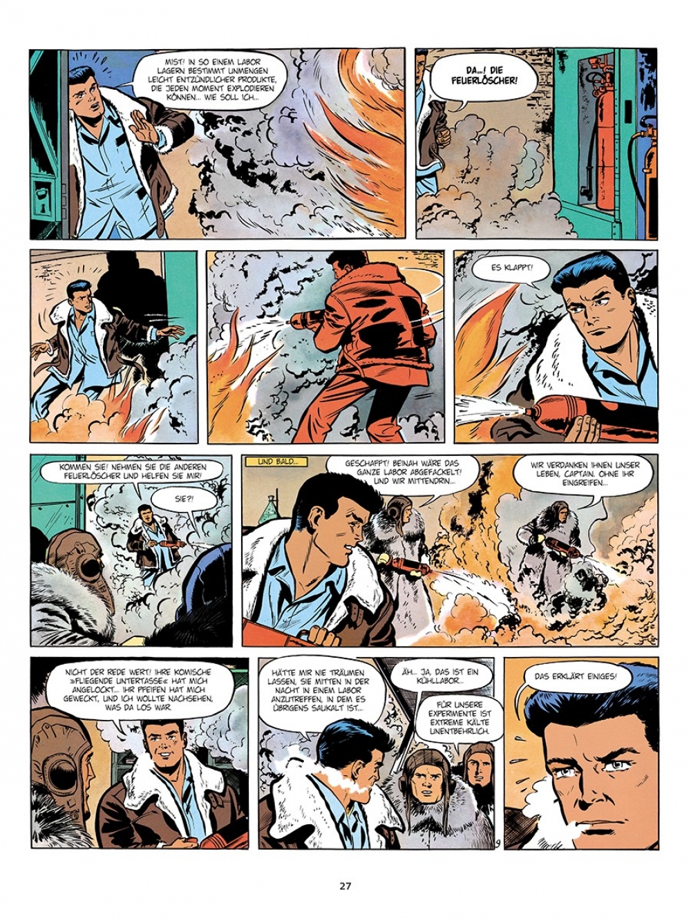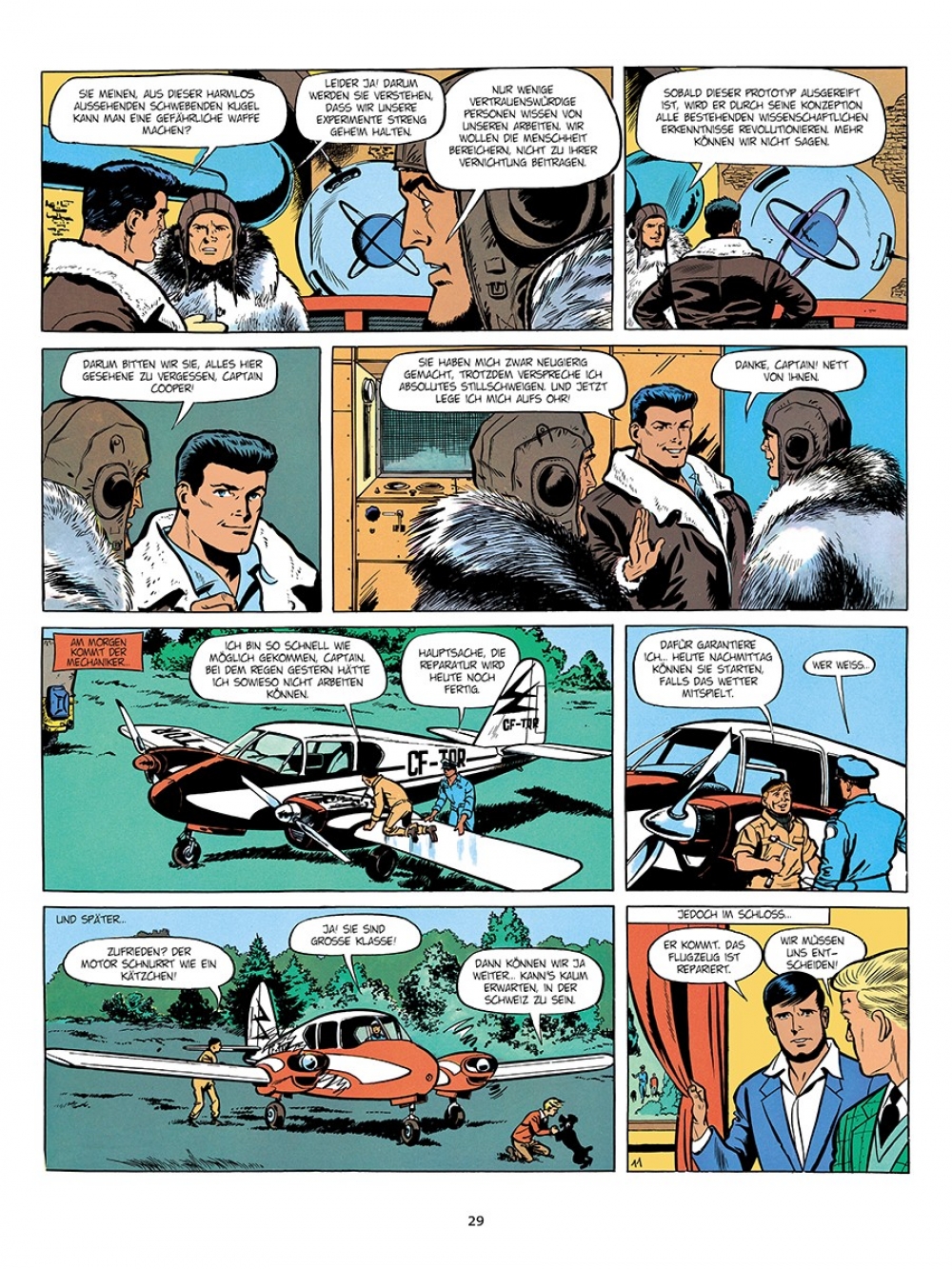 Er zählt zu den drei großen, klassischen Flieger-Assen der franko-belgischen Comics: Major Dan Cooper, Testpilot der Royal Canadian Air Force. In seiner fast vierzigjährigen Laufbahn hat er nahezu alles geflogen, was sich länger als drei Sekunden in der Luft halten kann. Und er hat Abenteuer nicht nur überall auf der Welt, sondern sogar darüber hinaus im Weltall erlebt – im Kampf mit Verbrechern, Verrätern, aber auch den Tücken der Technik. Dies ist das Verdienst vor allem eines Mannes: Albert Weinberg (1922-2011). Ende 1954 brachte er den Major und Luftfahrtingenieur zum ersten Mal an den Start, und bis 1992 sorgte er nicht nur für die sorgfältigen, technisch anspruchsvollen Zeichnungen, sondern er hat auch (fast) alle der spannenden Storys selber geschrieben. Lediglich bei drei von insgesamt 41 Episoden stieg Jean-Michel Charlier mit ins Comic-Cockpit, der ansonsten für die Fliegerkonkurrenten Buck Danny und Michel Tanguy zuständig war.