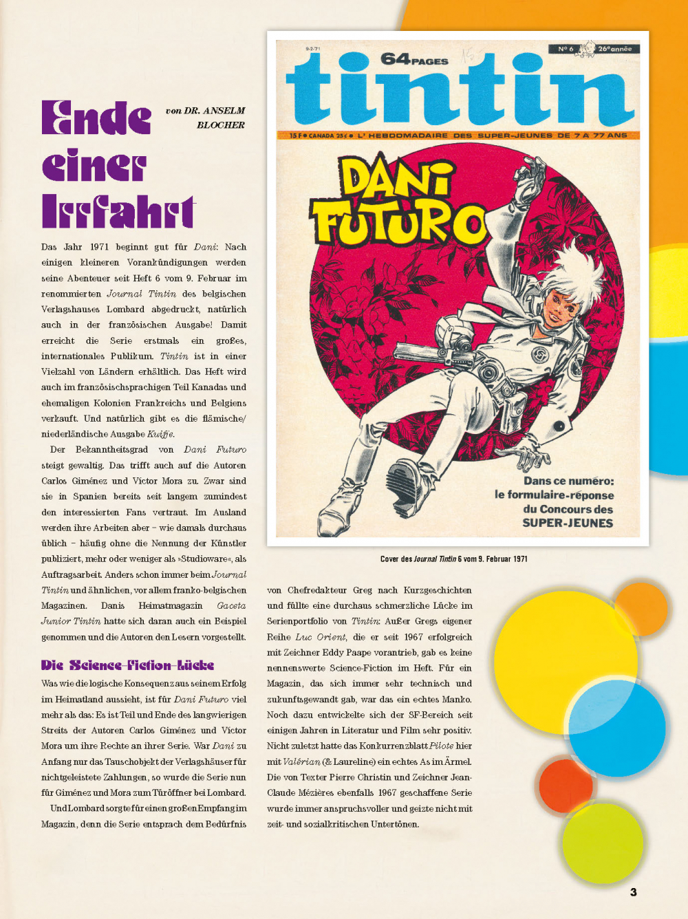 Die Veröffentlichung von Dani Futuro gehört definitiv in die Kategorie »Gehobene Schätze«. In enger Abstimmung mit dem Zeichner Carlos Giménez entsteht nun eine auf acht Bände angelegte Gesamtausgabe dieser im wahrsten Sinne des Wortes fantastischen Science-Fiction-Saga, die auch 50 Jahre nach ihrem Debüt nichts von ihrem jugendlichen Charme eingebüßt hat.