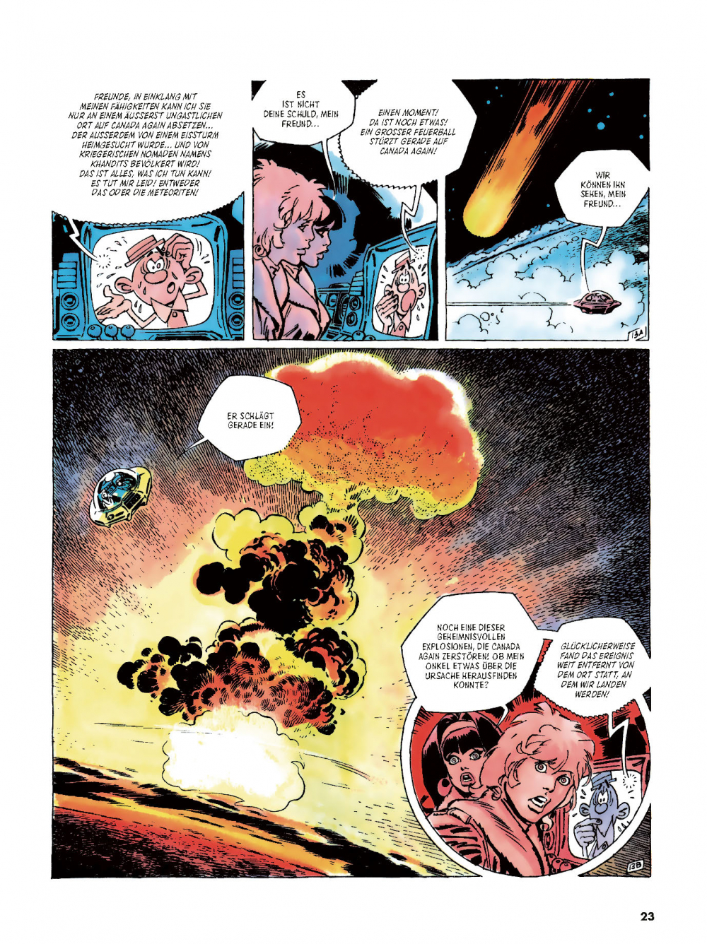 Wir sind in der Nähe der Galaxie M-81. Mitten im unerforschten Weltraum, befindet sich der Planet »Canada-Again«, der in ewigem Winter gefangen ist. Nach einer unfassbaren Katastrophe, die als »Nacht des Grauens« in die Geschichte eingeht, macht sich das transgalaktische Raumschiff »Caronia« auf den Weg, um die Hintergründe der Tragödie zu untersuchen. Mit an Bord ist der »Junge, der fast eineinhalb Jahrhunderte alt ist«: Dani Futuro!