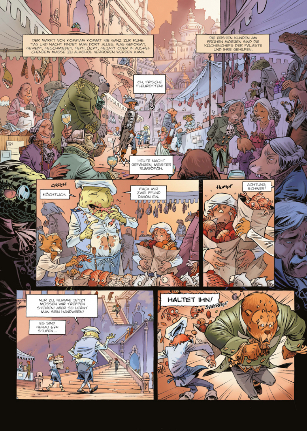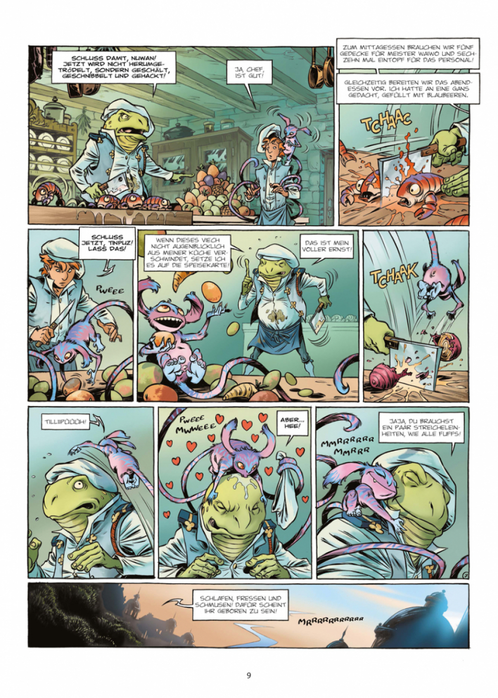 »Ein unkultivierter Küchenjunge wird von einem Buch gefressen« – das ist der Ausgangspunkt für »Danthrakon«, den neuen Geniestreich von Christophe Arleston (»Ekhö«, »Lanfeust«, »Die Schiffbrüchigen von Ythaq«). Der erfolgreichste Comic-Autor Frankreichs nimmt seine Leser mit in eine Welt voller Wunder, in der aus einer einfachen Idee Fantastisches erwachsen kann.