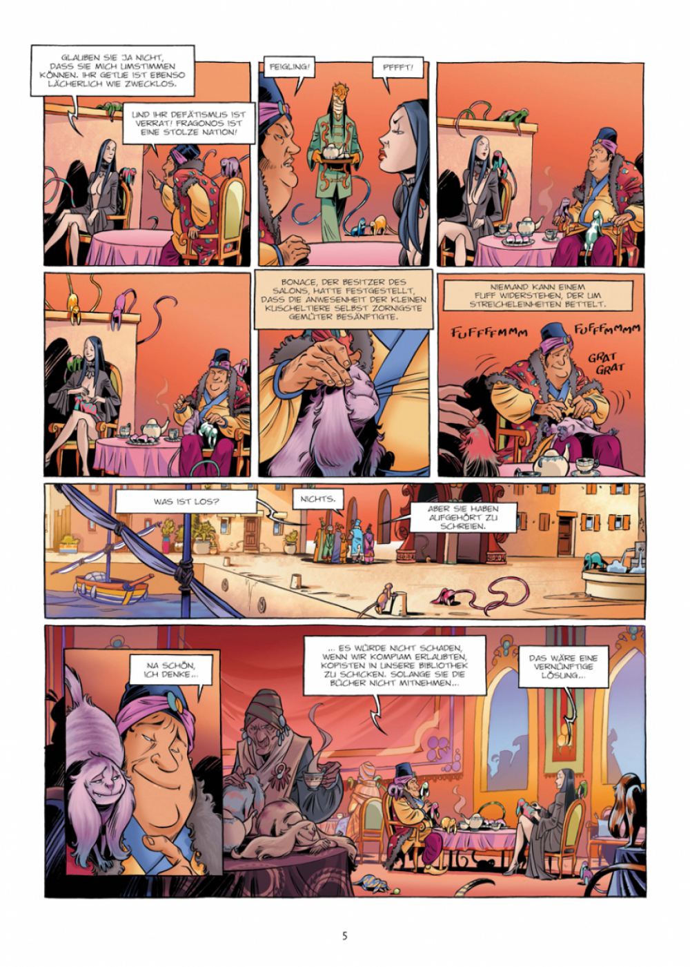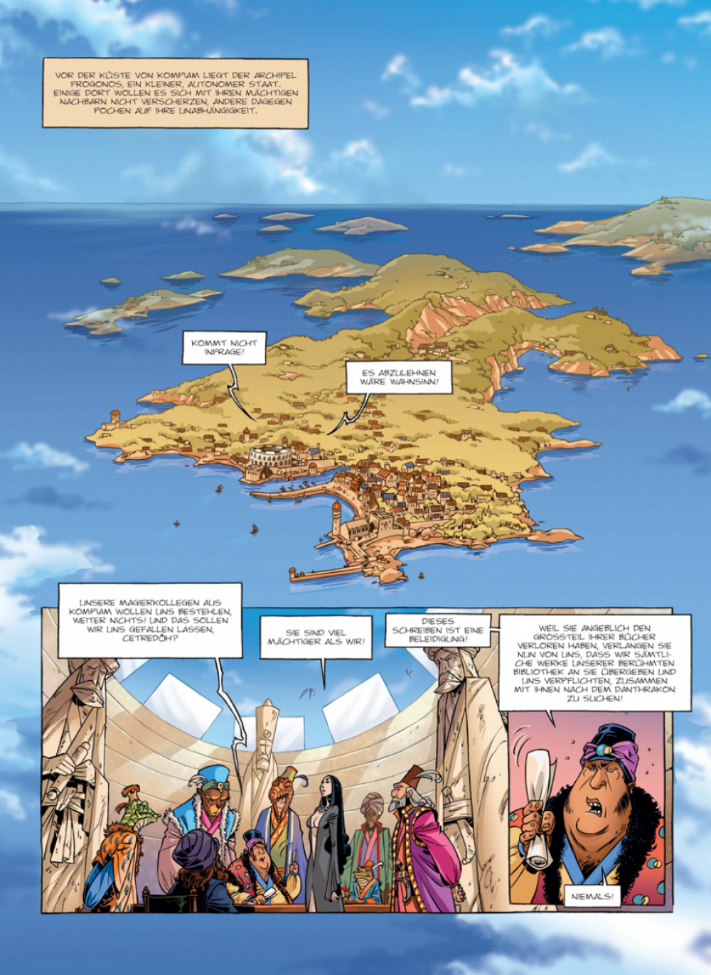 »Ein unkultivierter Küchenjunge wird von einem Buch gefressen« – das ist der Ausgangspunkt für »Danthrakon«, den neuen Geniestreich von Christophe Arleston (»Ekhö«, »Lanfeust«, »Die Schiffbrüchigen von Ythaq«). Der erfolgreichste Comic-Autor Frankreichs nimmt seine Leser mit in eine Welt voller Wunder, in der aus einer einfachen Idee Fantastisches erwachsen kann.