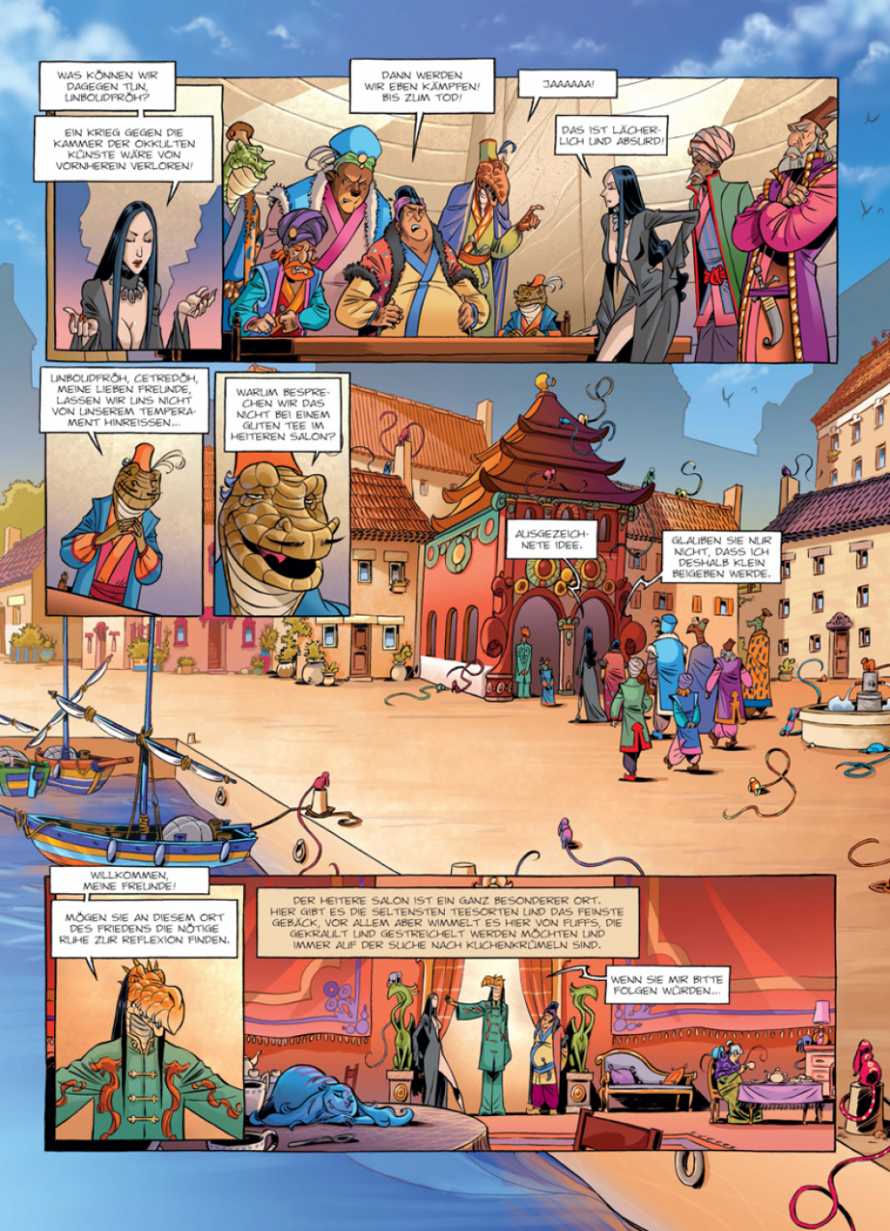 Der furchterregende Inquisitor Amutu hat Nuwan auf dessen waghalsiger Suche nach einer Lösung für sein kleines magisches Problem fast eingeholt! Aber das ist bei Weitem nicht Nuwans einziges Problem: Die Magierin Lyrelei hat ihn - wenig überraschend - hintergangen, und jetzt meldet auch noch der ehemalige Herr des Grimoires Danthrakon, dessen Magie auf Nuwan übergegangen ist, seine Besitzansprüche an...