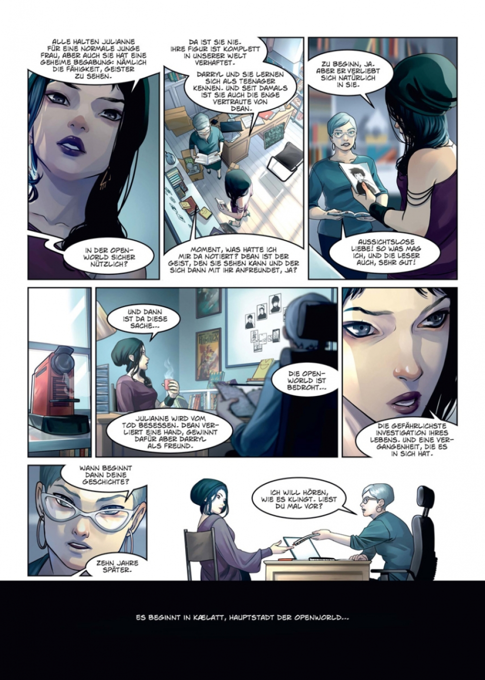 Openworld ist eine geheime Dimension, eine Parallelwelt, in der Informationen das wertvollste Gut sind. Journalisten sind dort Helden, und kein Journalist ist gefragter als Darryl. Denn nur er hat die Macht, das Gewebe der Realitäten zu durchdringen, um in die »graue Welt« zu gelangen – unsere Welt, aus der Darryl ursprünglich stammt. Die Reportagen über seine Abenteuer sind legendär, dabei ist es Darryls Hauptanliegen, die Bewohner von Openworld zu informieren und gesellschaftliche Missstände aufzudecken. Seine neueste Recherche um das rätselhafte Verschwinden eines Riesen ist äußerst beunruhigend, denn es scheint, dass eine schattenhafte Person hinter den Kulissen die magischen Energien, die ganz Openworld durchdringen, für ihre Zwecke manipuliert...
