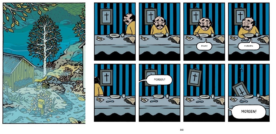 Die Geschichte beginnt am Tag der Tschernobyl-Katastrophe: Ein älterer Mann schlummert in seiner Hängematte und kümmert sich wenig um die ihn umgebende Welt. Der preisgekrönte finnische Comic-Künstler Tommi Musturi erzählt in seinem neuen Buch von dem ruhigen Leben eines pensionierten finnischen Ehepaares, während hinter den Bildern des alltäglichen Lebens etwas Größeres Gestalt annimmt. Eine Ahnung des nahenden Todes beginnt am Ehemann zu nagen und führt ihn in eine Welt der Träume und existenzieller Fragen. Seine Ehefrau bleibt als Stimme der Vernunft im Hintergrund. In seiner Erzählweise schenkt Musturi den feinen Nuancen seine Aufmerksamkeit und zeigt, dass der wahre Sinn des Lebens gerade in diesen Details steckt.