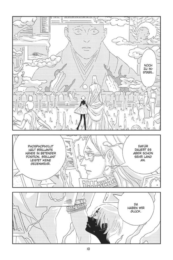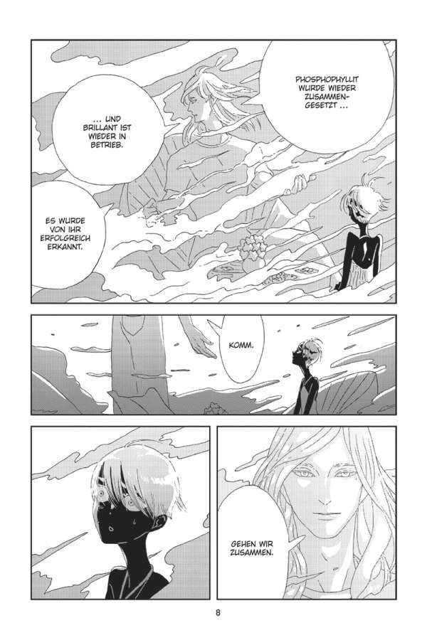 Zweihundert Jahre sind vergangen, seit Phos von den Juwelen auf der Erde zerschmettert wurde. Nun klammert Phos sich an das einzige Bruchstück der Erinnerung, das noch geblieben ist. Besessen von dem Ziel, Brillant zum Beten zu bringen und das Mondvolk endlich zu erlösen, entfacht Phos einen furchtbaren Krieg …