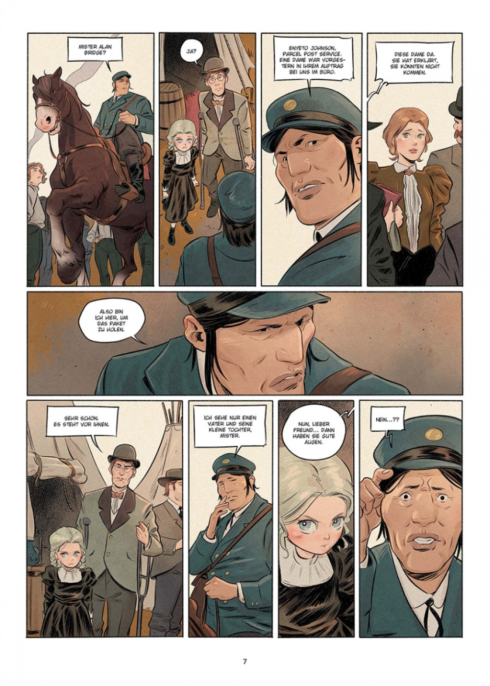 Im Jahr 1906 kostete das katastrophale Erdbeben an der Ostküste der USA zahllose Menschen das Leben. Die kleine Jenny verlor ihre Mutter unter den Trümmern und ist nun allein mit ihrem Stiefvater in den Ruinen der Stadt. Der ist von der Situation jedoch völlig überfordert und beschließt, Jenny zu seinen Eltern nach Chicago zu senden – und zwar per Post! Ein Schlupfloch in den Regularien des US Postal Service macht es möglich. So landet das Mädchen in der Obhut von Enyeto, einem hünenhaften Ureinwohner, der es sicher an sein Ziel bringen soll. Das ist der Beginn einer langen Reise zu Pferd und auf der Schiene, eines Trecks durch die amerikanische Wildnis und einer unwahrscheinlichen Freundschaft.