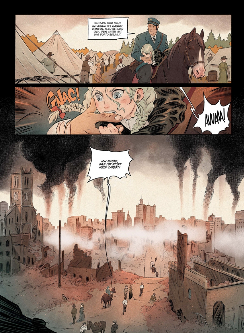 Nachdem sie in »Fukushima« die Helden der Katastrophe von 2011 porträtierten, tauchen Bertrand Galic und Roger Vidal in ein turbulentes Amerika im Umbruch zwischen Wildem Westen und Moderne ein und erzählen mit »Das Mädchen und der Postreiter« eine bewegende Abenteuergeschichte vor realhistorischem Hintergrund.