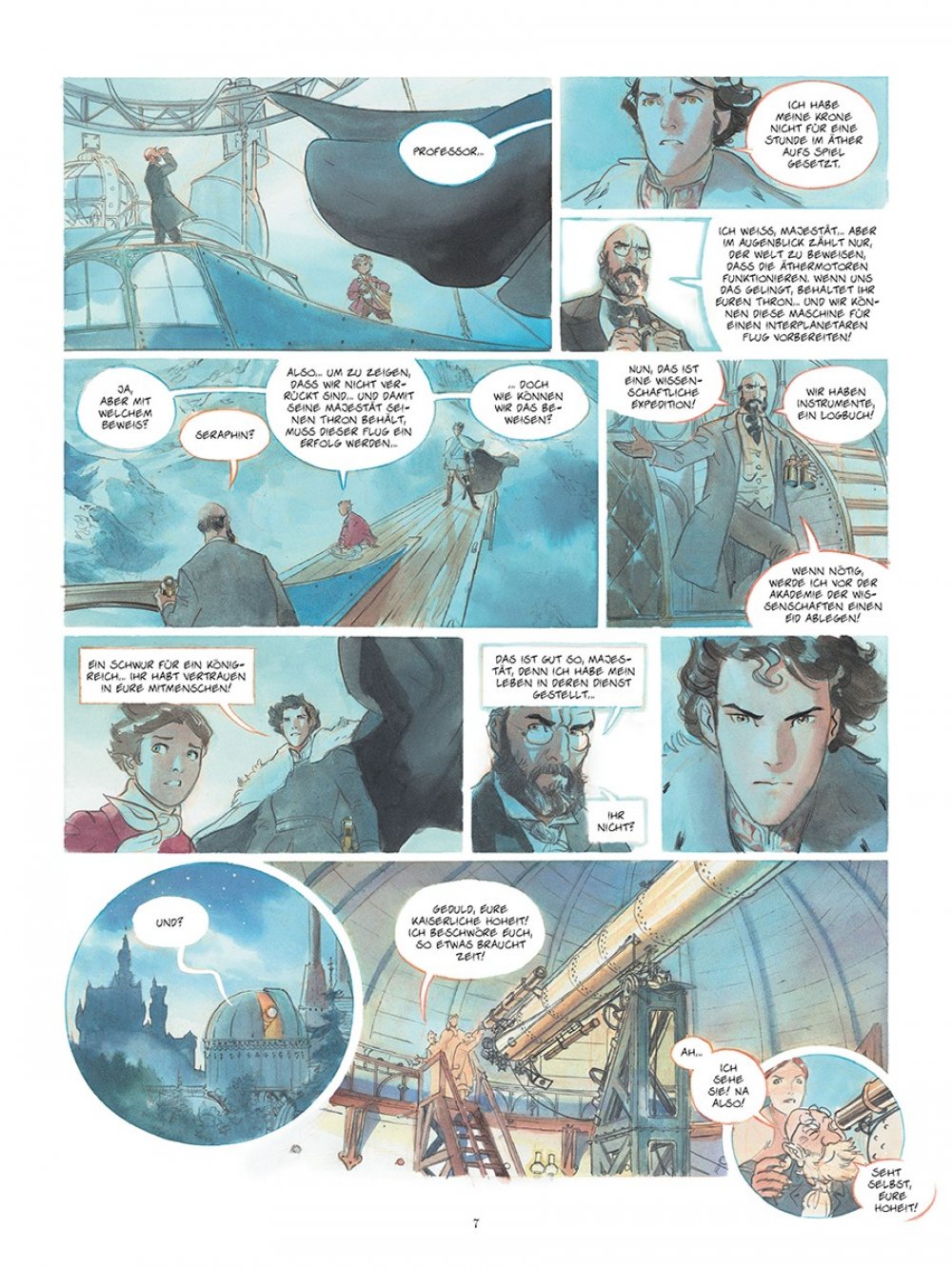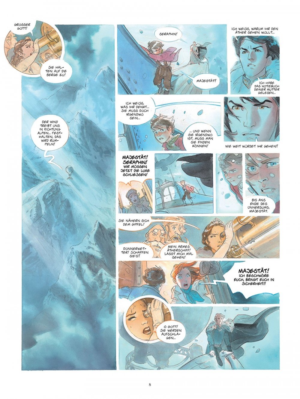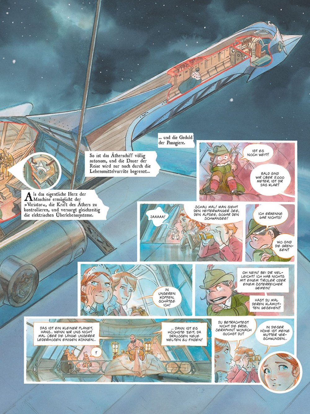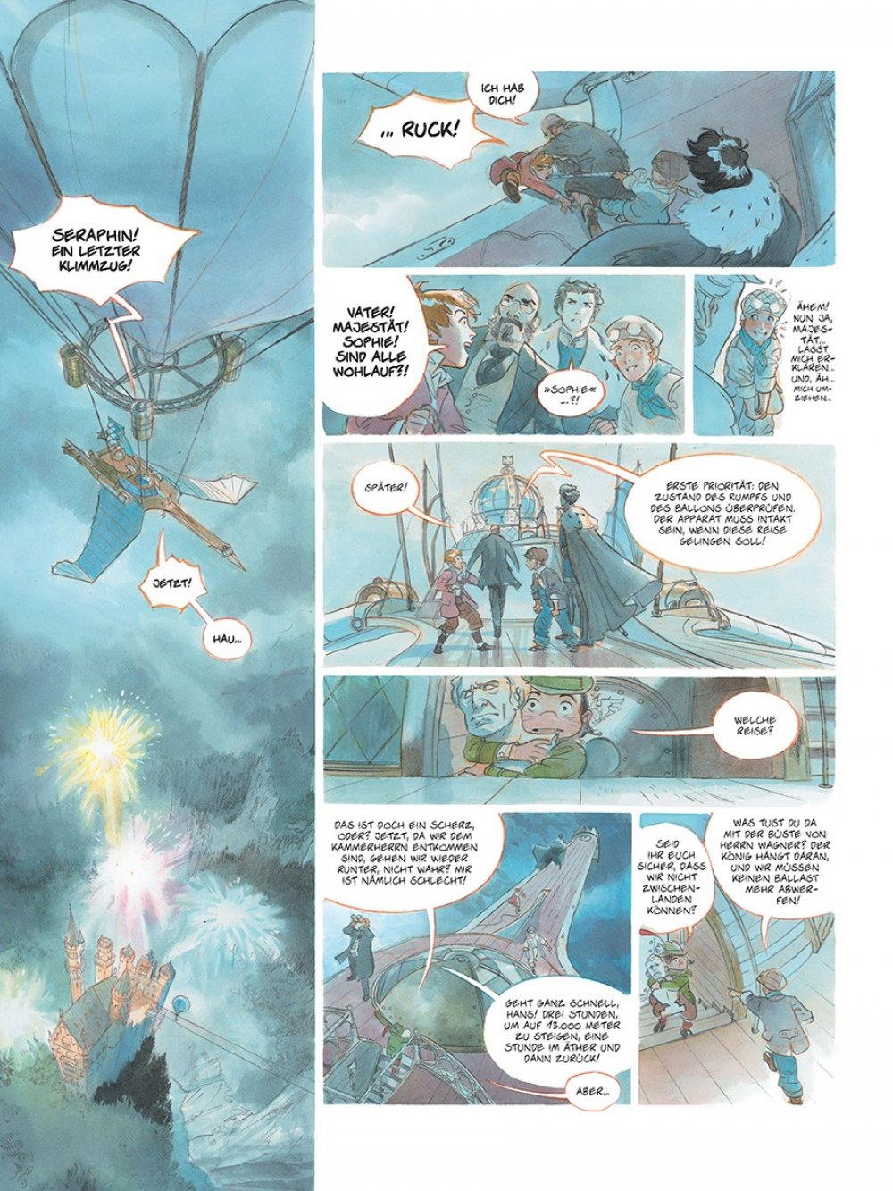 Seraphin ist ein begabter, aber undisziplinierter Schüler, der seinen Latein- und Physiklehrer zur Weißglut treibt. Alle Gedanken des Jungen kreisen stets um den Äther, jene Substanz, die jenseits der Erdatmosphäre vorkommen soll und die bisher unvorstellbare Projekte außerhalb des Globus ermöglichen soll. Schon Seraphins Mutter hegte dieselbe Leidenschaft und fand den Tod, als sie mit einem Heißluftballon auf eine Höhe von mehr als 13000 Metern stieg. Sein anfänglich noch skeptischer Vater lässt sich umstimmen, als er einen anonymen Brief erhält, dessen Verfasser vorgibt, die Aufzeichnungen seiner Frau zu besitzen, die sie auf ihrem letzten Flug mitnahm. Dies markiert den Anfang eines fantastischen Abenteuers, in dem sich Vater und Sohn auf die Reise nach Bayern auf den Spuren des geheimnisvollen Notizbuchs machen…