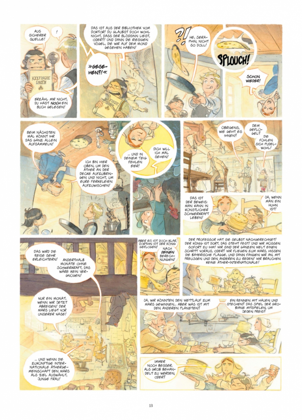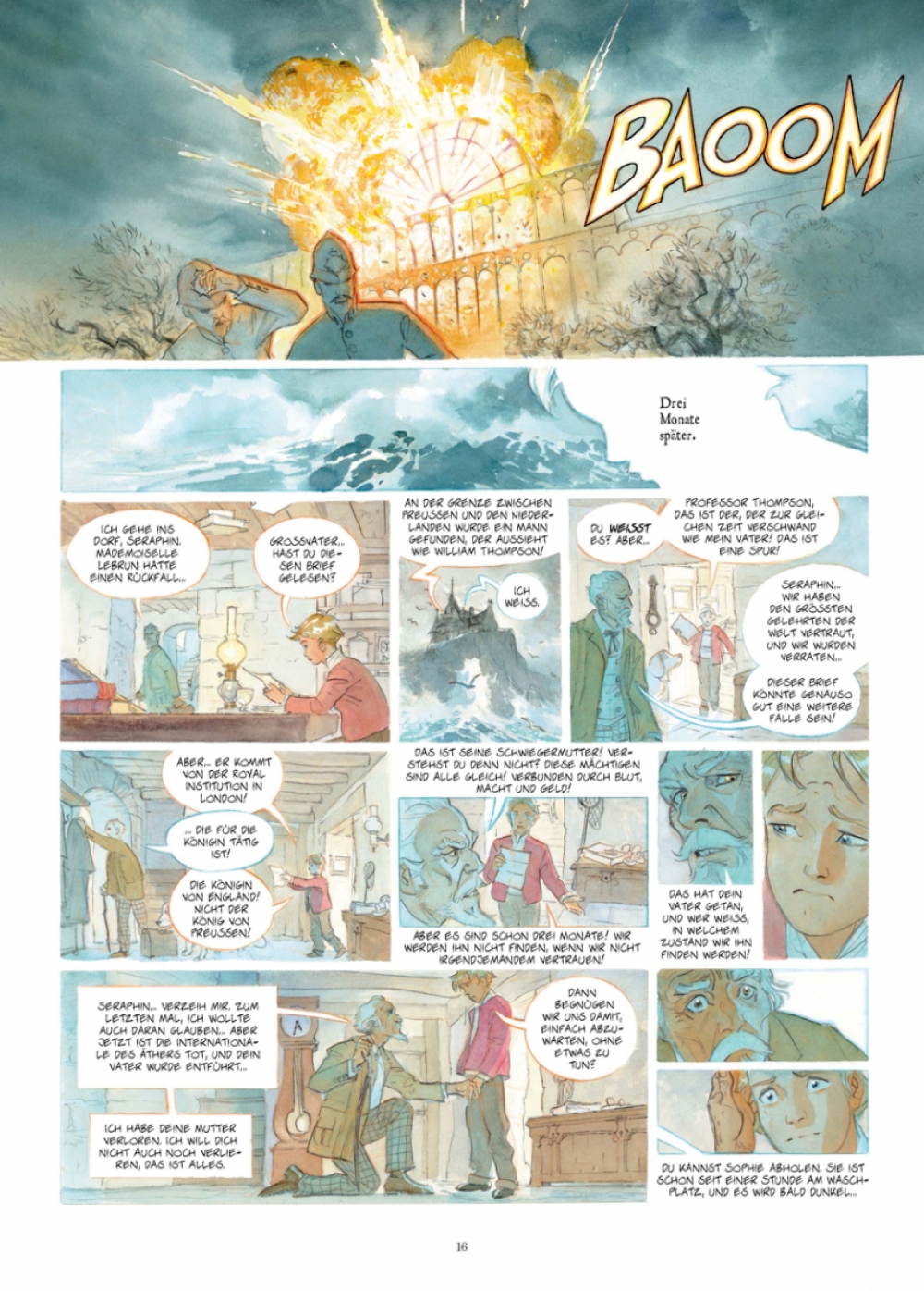 Seraphin ist ein begabter, aber undisziplinierter Schüler, der seinen Latein- und Physiklehrer zur Weißglut treibt. Alle Gedanken des Jungen kreisen stets um den Äther, jene Substanz, die jenseits der Erdatmosphäre vorkommen soll und die bisher unvorstellbare Projekte außerhalb des Globus ermöglichen soll. Schon Seraphins Mutter hegte dieselbe Leidenschaft, ist aber verschollen, seit sie mit einem Heißluftballon auf eine Höhe von mehr als 13000 Metern stieg. Sein anfänglich noch skeptischer Vater lässt sich umstimmen, als er einen anonymen Brief erhält, dessen Verfasser vorgibt, die Aufzeichnungen seiner Frau zu besitzen, die sie auf ihrem letzten Flug mitnahm. Dies markiert den Anfang eines fantastischen Abenteuers, in dem sich Vater und Sohn auf die Reise nach Bayern auf den Spuren des geheimnisvollen Notizbuchs machen…