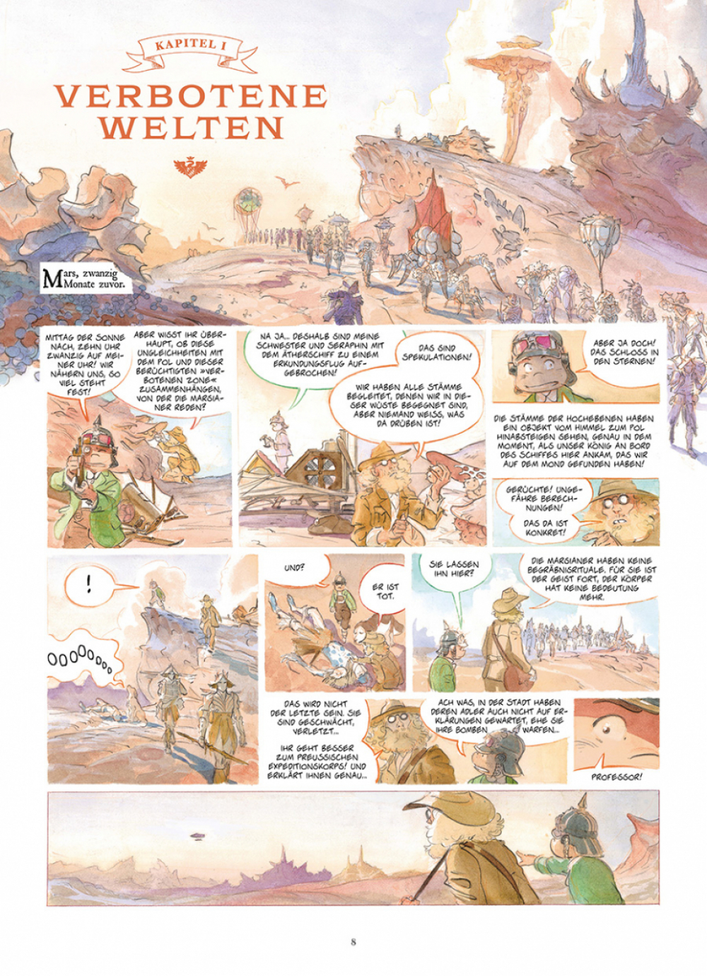Ein Vater und sein Sohn erleben ein fantastisches Abenteuer im Bayern des 19. Jahrhunderts. Ein neuer Alex Alice in gewohnt prächtigen Bildern und Direktkolorierung. Seraphin ist ein begabter, aber undisziplinierter Schüler, der seinen Latein- und Physiklehrer zur Weißglut treibt. Alle Gedanken des Jungen kreisen stets um den Äther, jene Substanz, die jenseits der Erdatmosphäre vorkommen soll und die bisher unvorstellbare Projekte außerhalb des Globus ermöglichen soll. Schon Seraphins Mutter hegte dieselbe Leidenschaft, ist aber verschollen, seit sie mit einem Heißluftballon auf eine Höhe von mehr als 13000 Metern stieg. Sein anfänglich noch skeptischer Vater lässt sich umstimmen, als er einen anonymen Brief erhält, dessen Verfasser vorgibt, die Aufzeichnungen seiner Frau zu besitzen, die sie auf ihrem letzten Flug mitnahm. Dies markiert den Anfang eines fantastischen Abenteuers, in dem sich Vater und Sohn auf die Reise nach Bayern auf den Spuren des geheimnisvollen Notizbuchs machen…