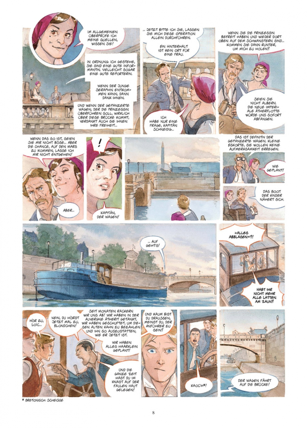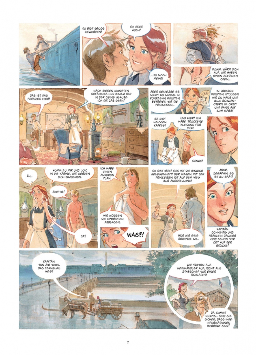 Ein Vater und sein Sohn erleben ein fantastisches Abenteuer im Bayern des 19. Jahrhunderts. Ein neuer Alex Alice in gewohnt prächtigen Bildern und Direktkolorierung. Seraphin ist ein begabter, aber undisziplinierter Schüler, der seinen Latein- und Physiklehrer zur Weißglut treibt. Alle Gedanken des Jungen kreisen stets um den Äther, jene Substanz, die jenseits der Erdatmosphäre vorkommen soll und die bisher unvorstellbare Projekte außerhalb des Globus ermöglichen soll. Schon Seraphins Mutter hegte dieselbe Leidenschaft, ist aber verschollen, seit sie mit einem Heißluftballon auf eine Höhe von mehr als 13000 Metern stieg. Sein anfänglich noch skeptischer Vater lässt sich umstimmen, als er einen anonymen Brief erhält, dessen Verfasser vorgibt, die Aufzeichnungen seiner Frau zu besitzen, die sie auf ihrem letzten Flug mitnahm. Dies markiert den Anfang eines fantastischen Abenteuers, in dem sich Vater und Sohn auf die Reise nach Bayern auf den Spuren des geheimnisvollen Notizbuchs machen…