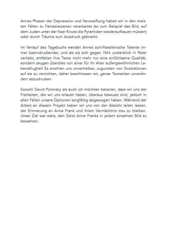 »Ari Folman und David Polonsky ist es auf eine unglaublich intelligente und einfühlsame Art gelungen das Tagebuch zu illustrieren und eine eigene fundierte, gefühlsbetonte und immer wieder auch witzige Interpretationen hinzuzufügen. Ich bin begeistert!«