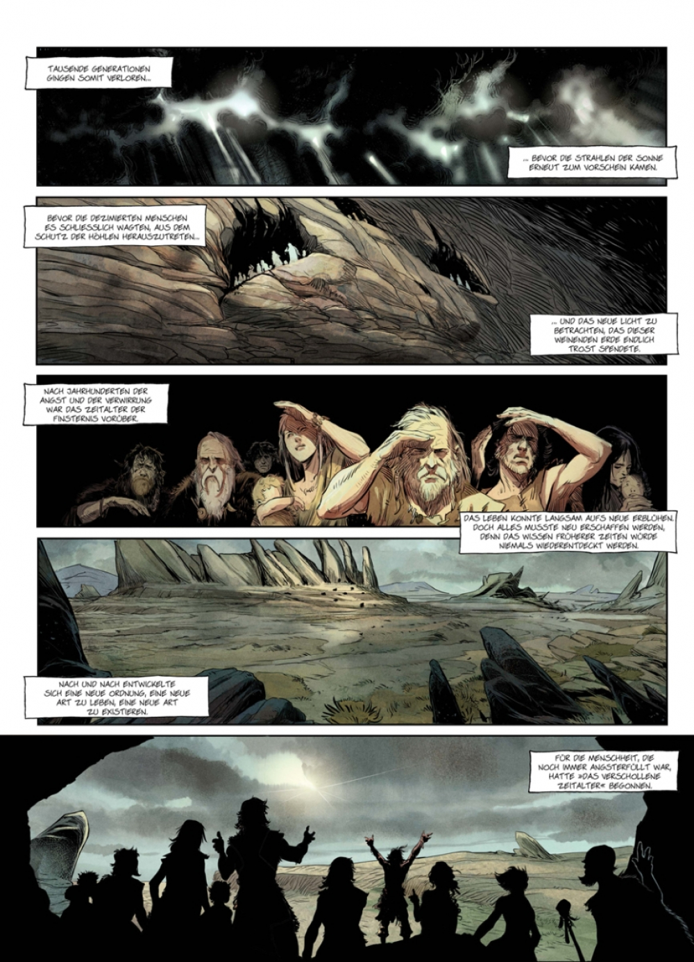 Tausende Jahre später ist die Sonne zurückgekehrt und bietet den überlebenden Menschen, die in Nomadenclans mit ihren Herden umherziehen, einen blassen Hoffnungsschimmer. Bis ein Mann namens Primus aus Bruchstücken des verlorenen Wissens einen Plan schmiedet, um zum Leben unserer Vorfahren zurückzukehren. Doch die Clans wehren sich mit Gewalt gegen Primus‘ Vision, und schon bald wird die Last seiner Vision auf den Schultern seiner Tochter Elaine ruhen. Denn vielleicht ist sie unsere letzte Chance…