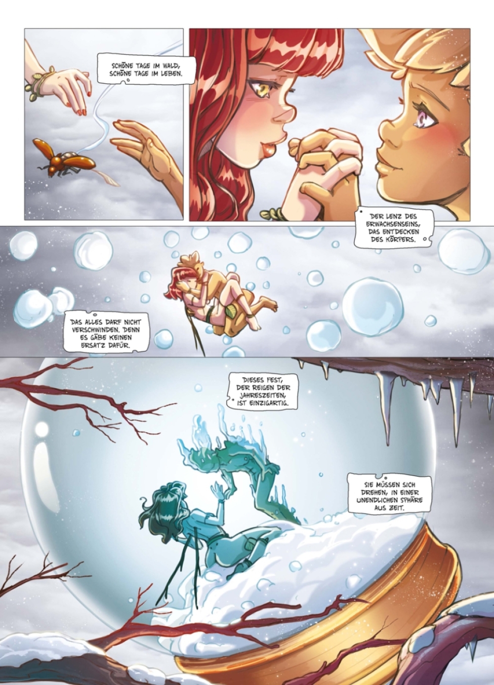Katia Even (»Die Göttin«) mischt für »Das Volk der Nebel« klassische Fantasy mit verspielter Erotik zu einem leichtherzigen Märchen, das von Zeichner Styloïde in farbenfrohe Bilder gefasst wird.