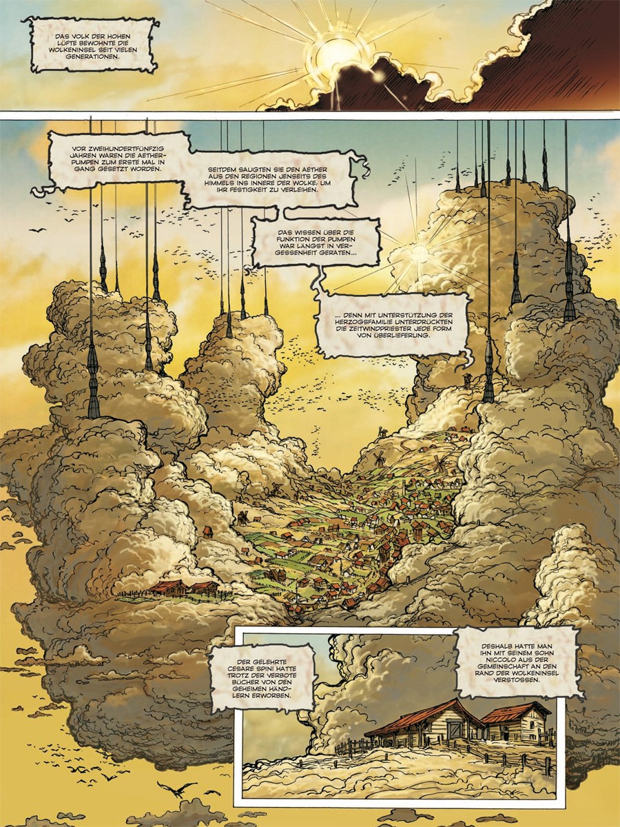 Der rebellische Niccolo, der Junge mit den goldenen Augen, wird vom Herzog des Wolkenreichs ausgesandt, um eine rätselhafte Substanz zu finden, ohne die es auf den Wolken kein Leben geben kann – den Atem der verschollenen Drachen, den Aether.