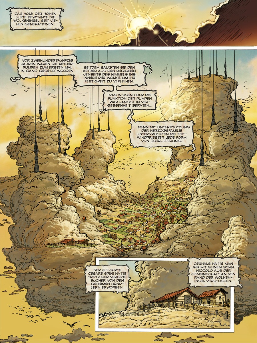 Der rebellische Niccolo, der Junge mit den goldenen Augen, wird vom Herzog des Wolkenreichs ausgesandt, um eine rätselhafte Substanz zu finden, ohne die es auf den Wolken kein Leben geben kann – den Atem der verschollenen Drachen, den Aether.