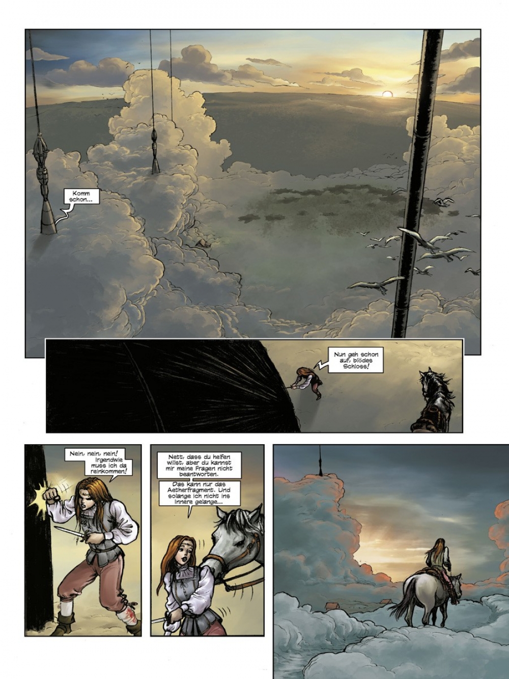 Das Wolkenvolk ist vom Untergang bedroht. Der rebellische Niccolo, der Junge mit den goldenen Augen, wird vom Herzog der Hohen Lüfte ausgesandt, um eine rätselhafte Substanz zu finden, ohne die es auf den Wolken kein Leben geben kann – den Atem der verschollenen Drachen, den Aether. Fliegende Schwertkämpfer, mächtige Drachen und unsterbliche Magier im Alten China. Die atemberaubende Comicadaption des Bestsellers von Kai Meyer!