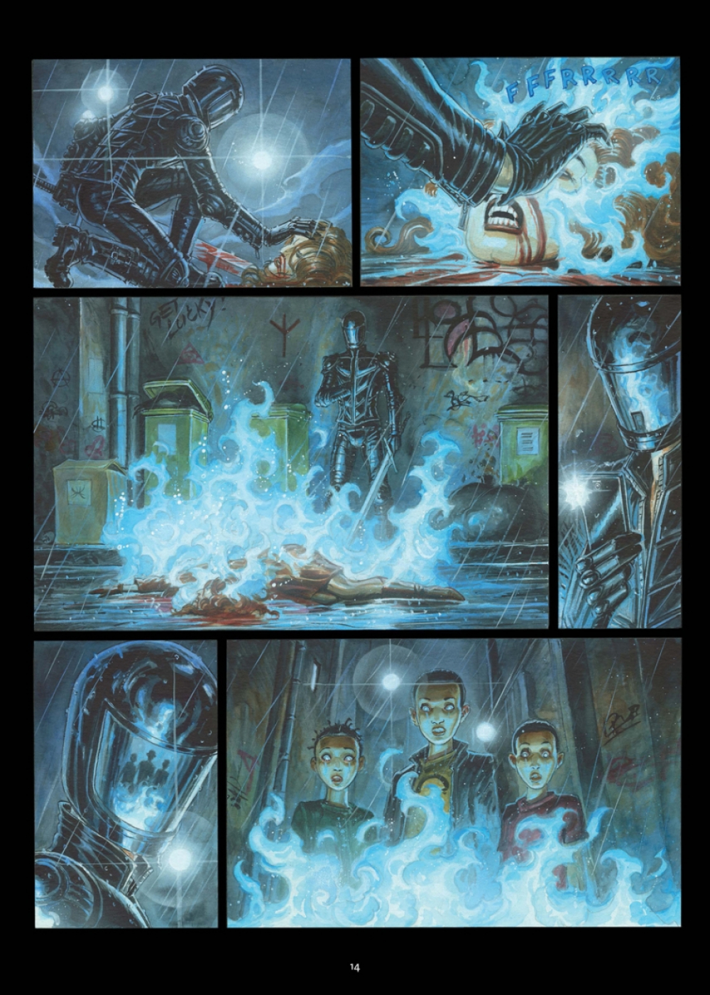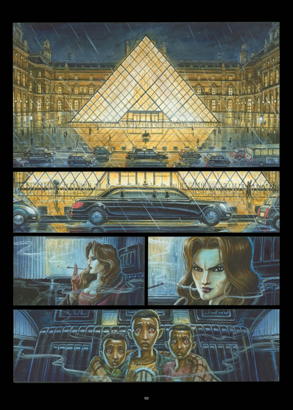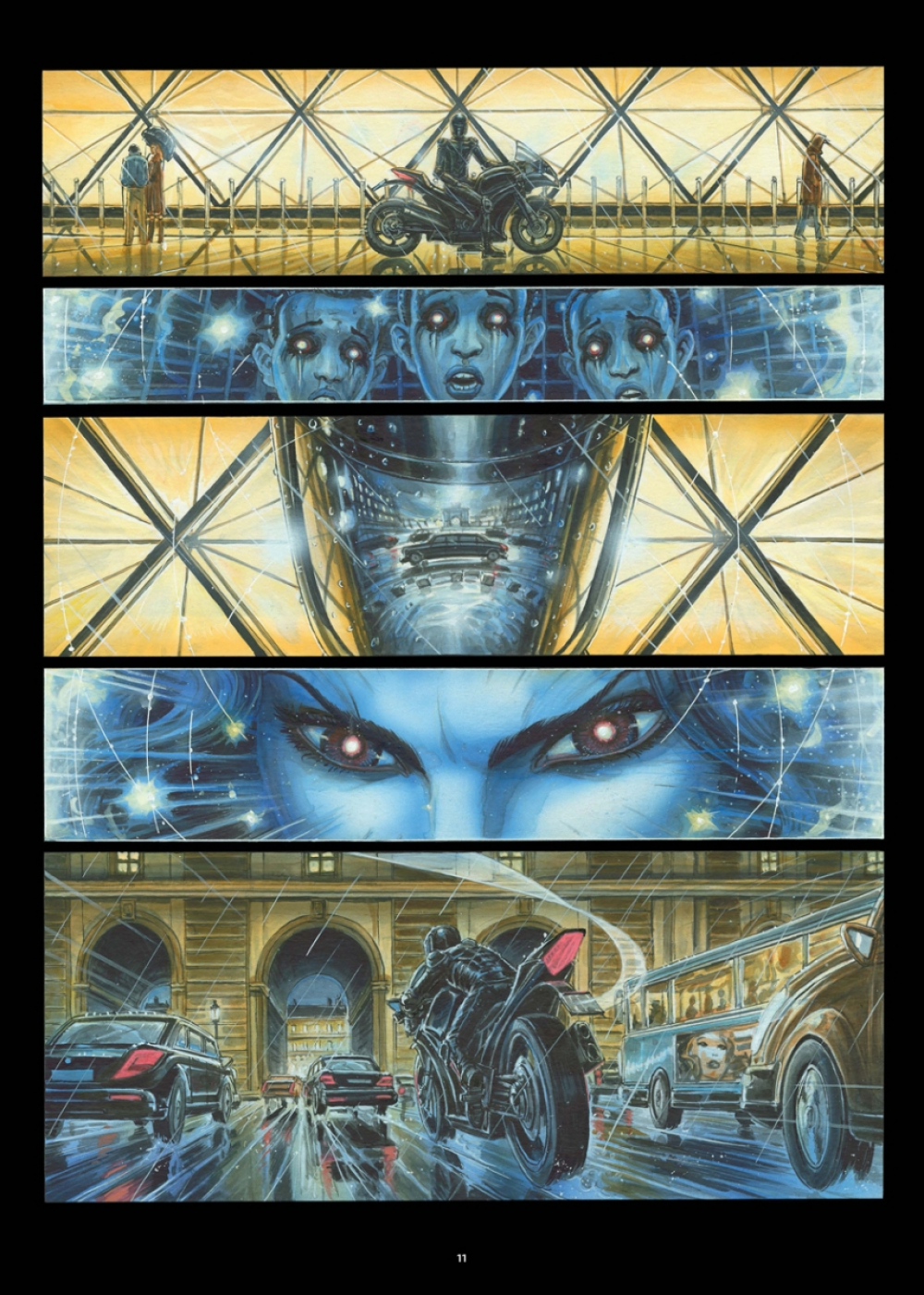 »Das dritte Auge« ist mehr als ein Comic: ein assoziativer, fast halluzinogener Farbenrausch aus Licht, Schatten und Form, eine Reise ins Übersinnliche und Unterbewusste – ein Erlebnis, wie es nur Olivier Ledroit auf die Seite bannen kann.