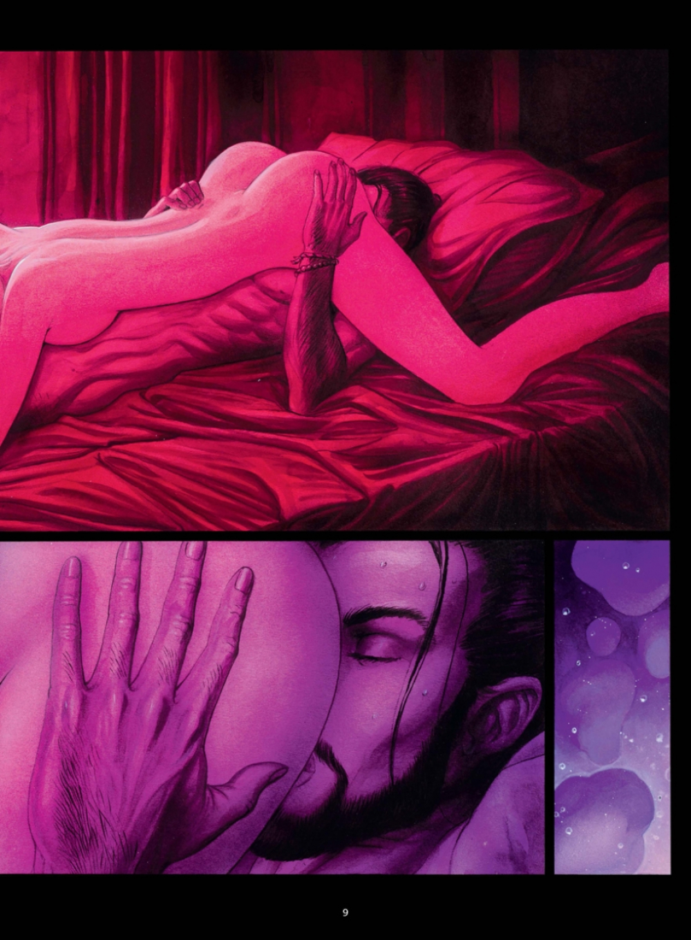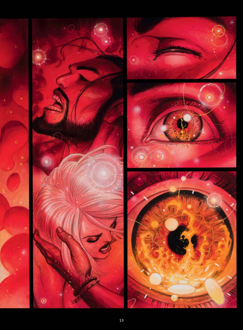 »Das dritte Auge« ist mehr als ein Comic: ein assoziativer, fast halluzinogener Farbenrausch aus Licht, Schatten und Form, eine Reise ins Übersinnliche und Unterbewusste – ein Erlebnis, wie es nur Olivier Ledroit auf die Seite bannen kann.
