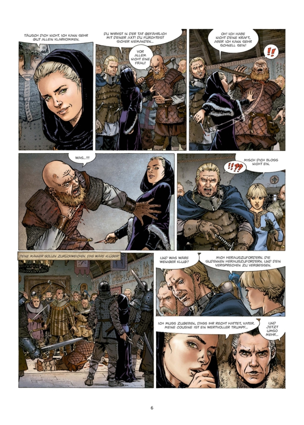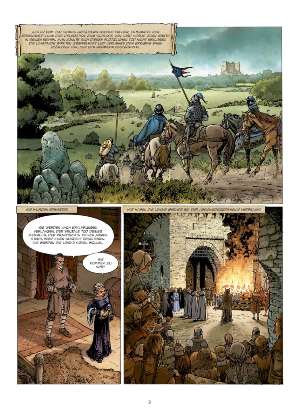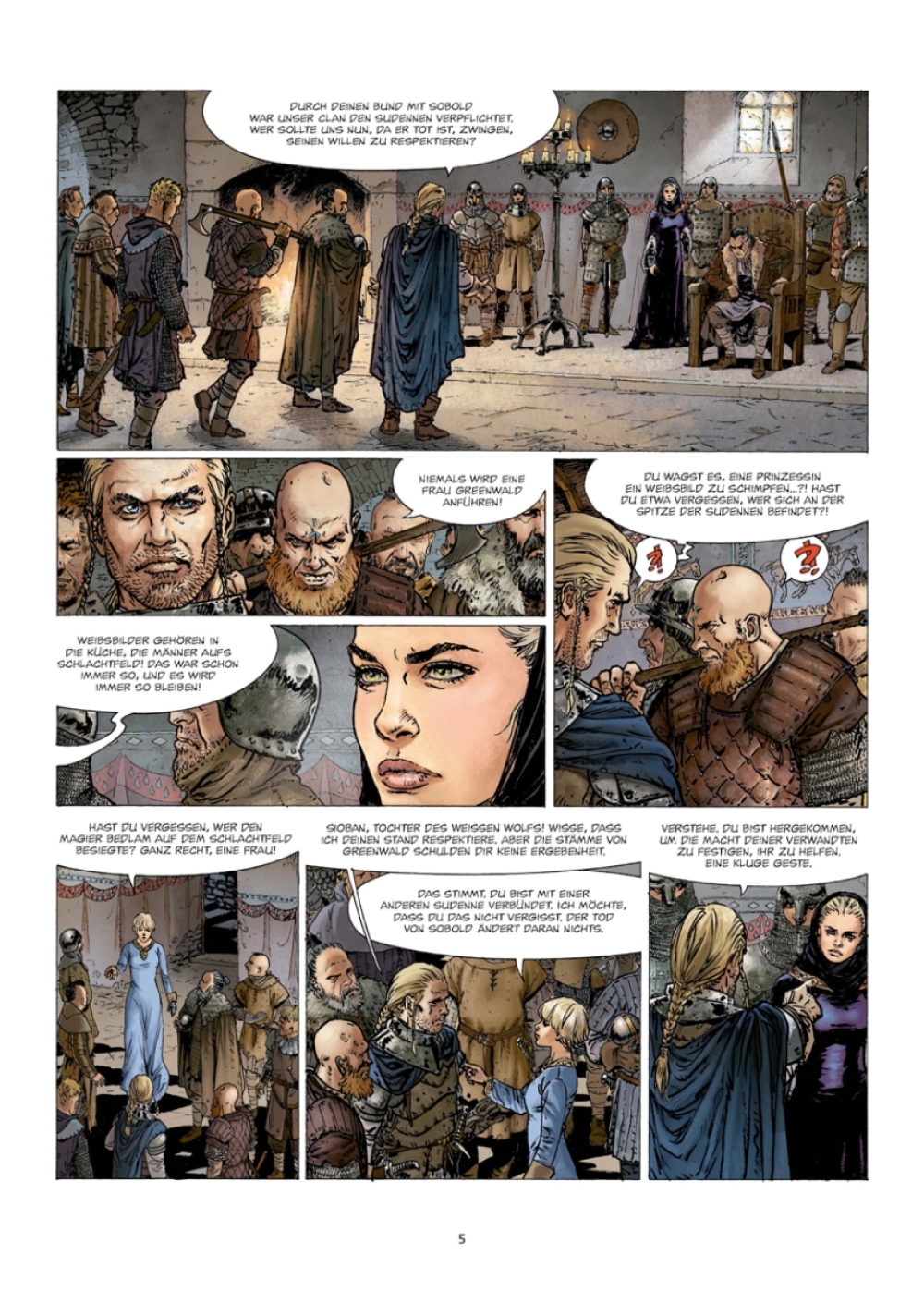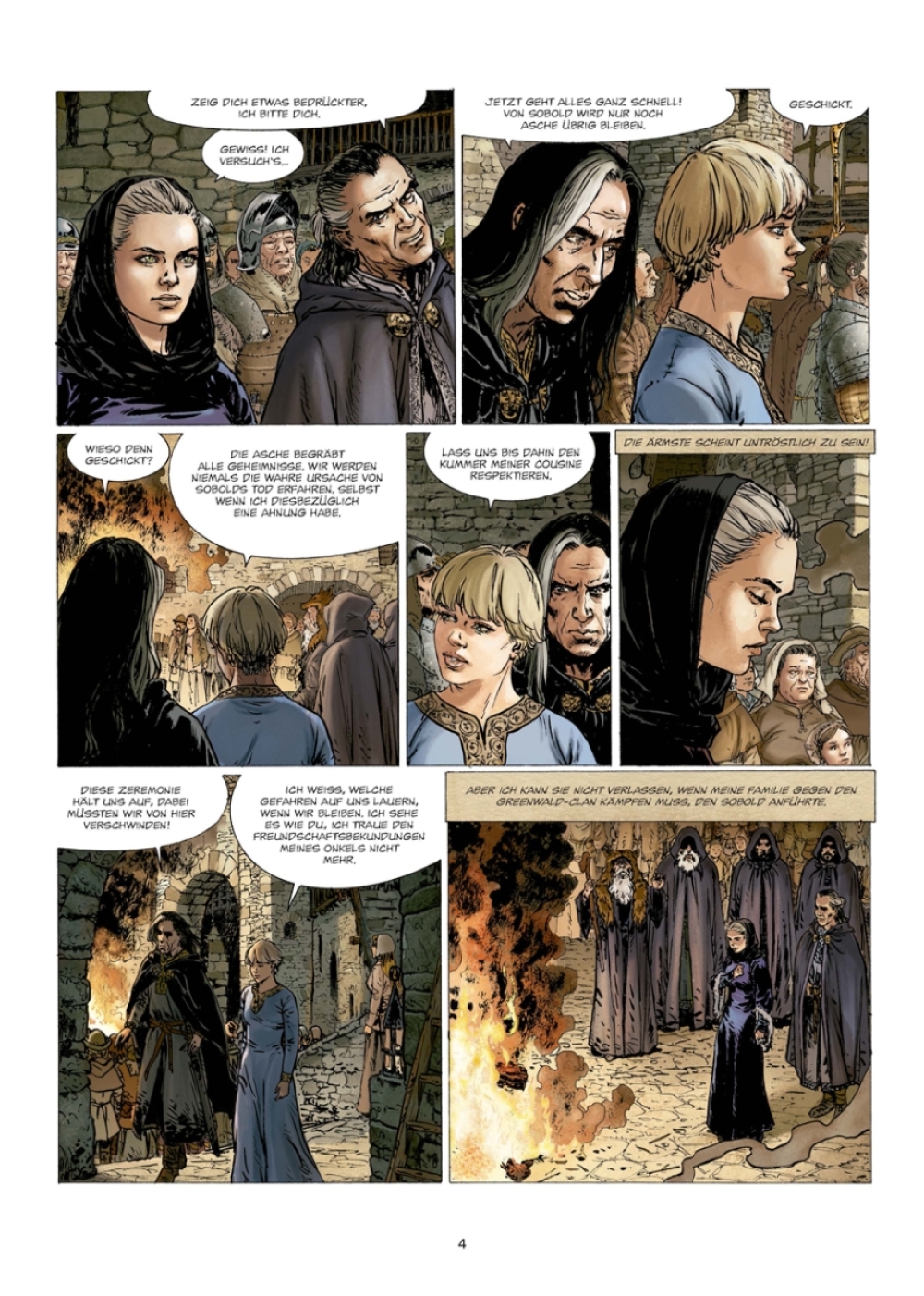 Im vierten Zyklus von »Das verlorene Land«, der von Paul Teng meisterhaft illustriert wird, taucht Jean Dufaux tiefer ein in das Schicksal von Sioban, der Sudennenkönigin, deren Legende noch längst nicht auserzählt wurde. Sobold, der Anführer des Greenwald-Klans und Ehemann von Aylissa, ist aus heiterem Himmel verstorben. Seine Männer sind außer sich, denn niemand kann sich den plötzlichen Tod erklären. Sioban muss all ihre Überzeugungskraft aufwenden, um den Frieden zwischen den Klans zu wahren. Ihre Cousine Aylissa jedoch hält nichts von Frieden, in ihren Augen zählt nur Macht. Und ihr ist jedes Mittel recht, um sie zu erlangen…