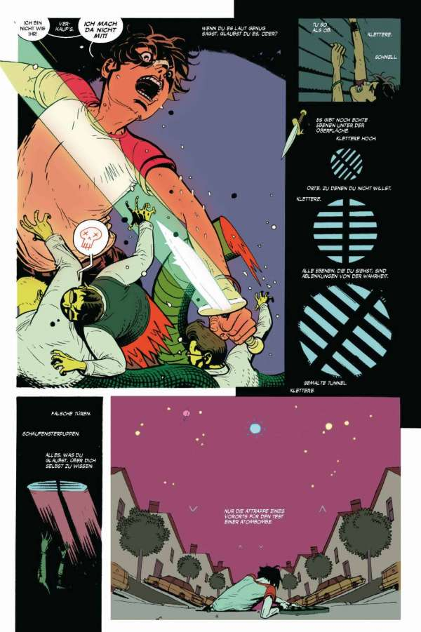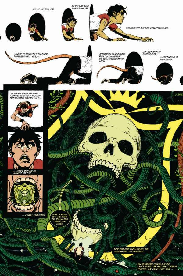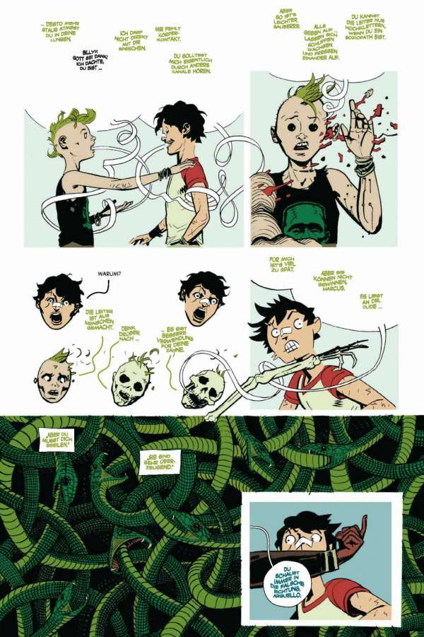 Die Abrechnung Die altbekannte Crew kehrt an die Kings Dominion zurück, um festzustellen, dass sich die Dinge in ihrer Abwesenheit verändert haben. Das Programm hat sich geändert. Master Lins Pläne sind aufgeflogen. Verrat. Rätsel. Das Geheimnis der Katakomben unter der Schule. Der Tag des Jüngsten Gerichts für die Korrupten. Unsere Freunde versuchen, alles zusammenzuhalten, während die Abschlussprüfung der Erstsemester immer näher rückt... Der Kreis um Rick Remenders und Wes Craigs düster-humorvollen Blick auf den Untergrund der 1980er Jahre schließt sich.