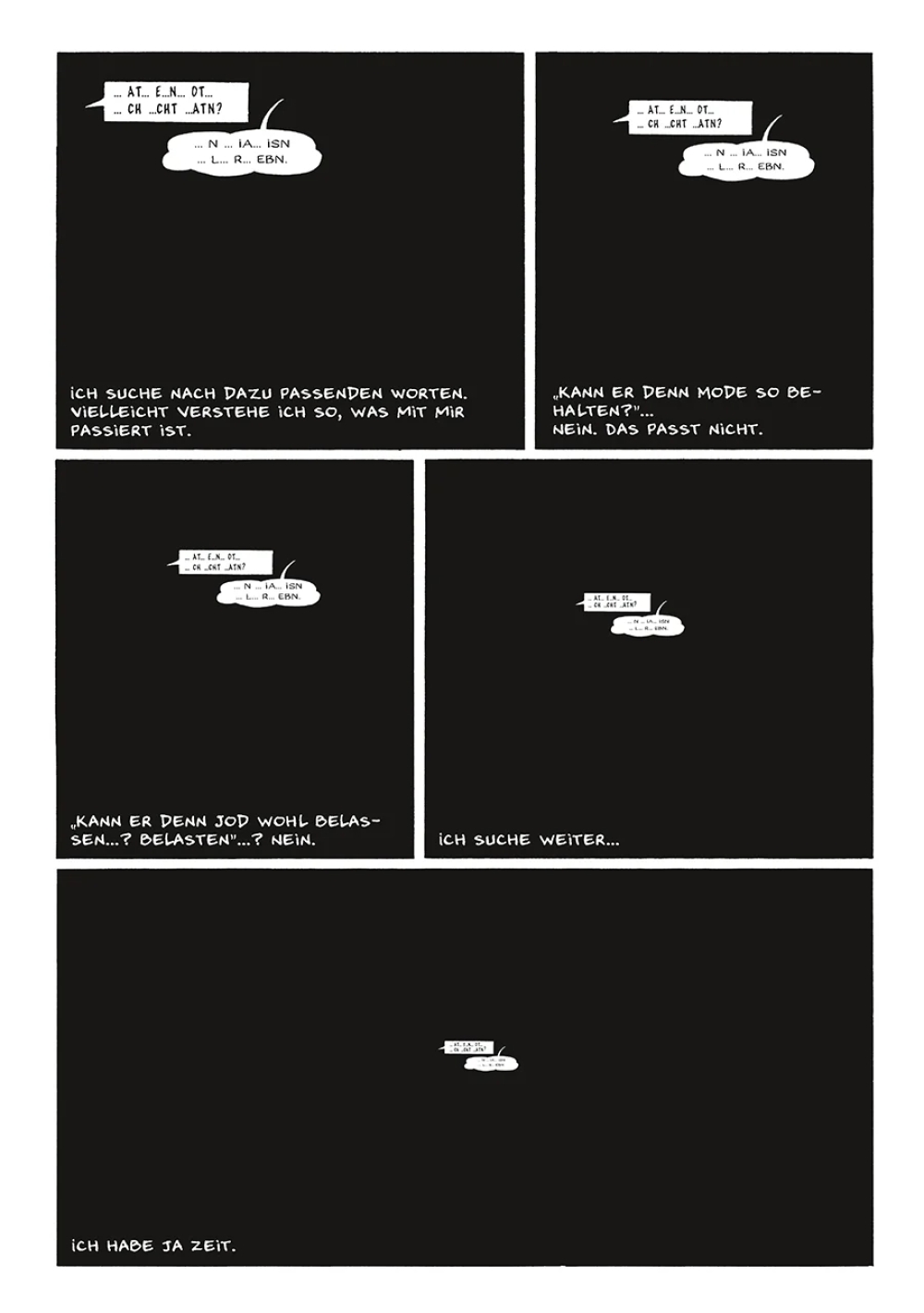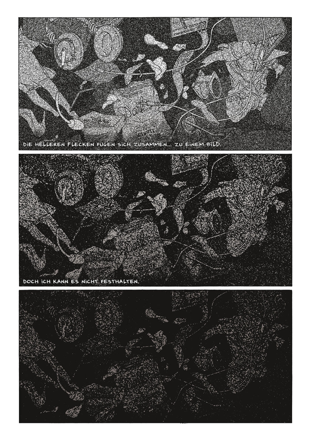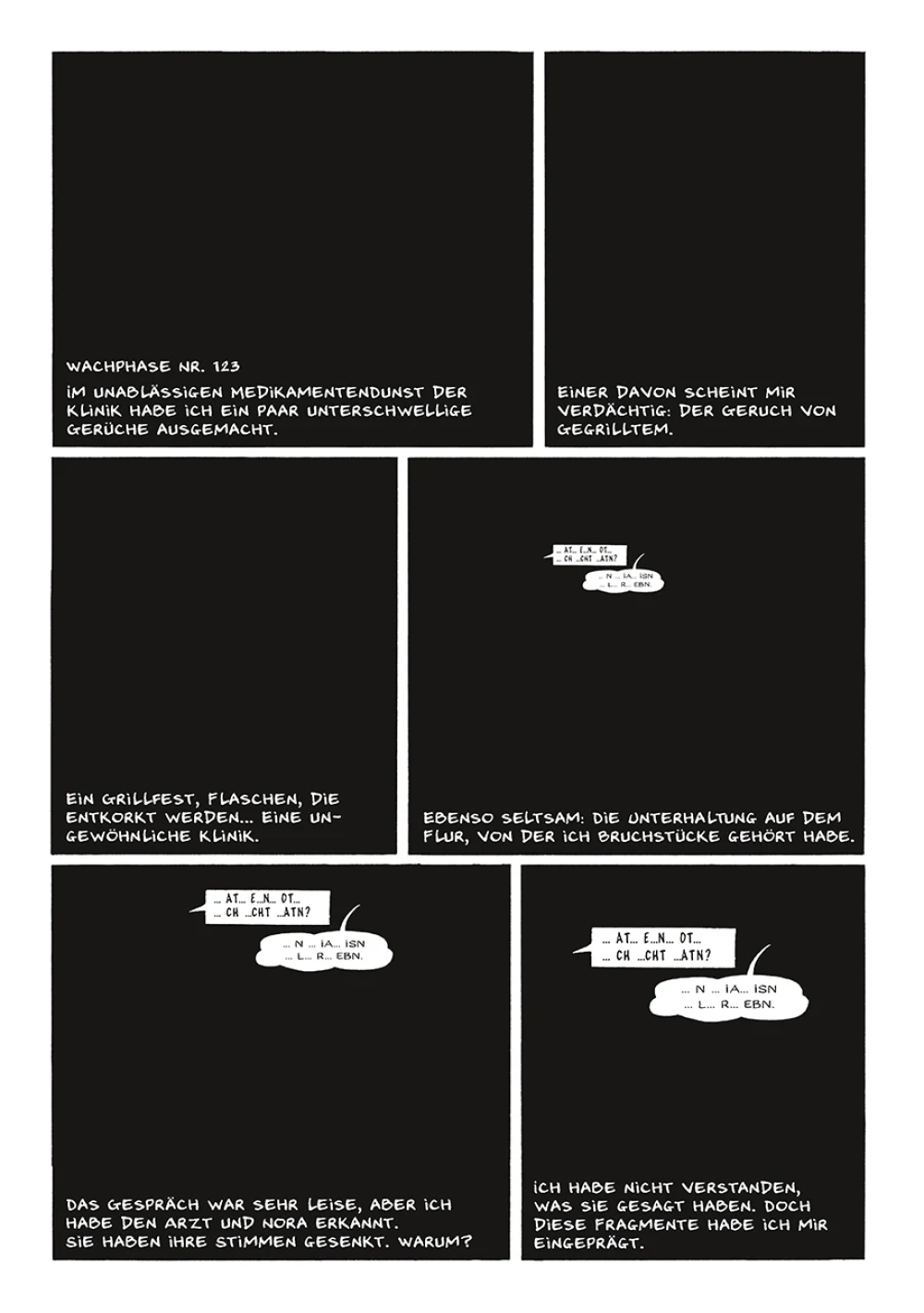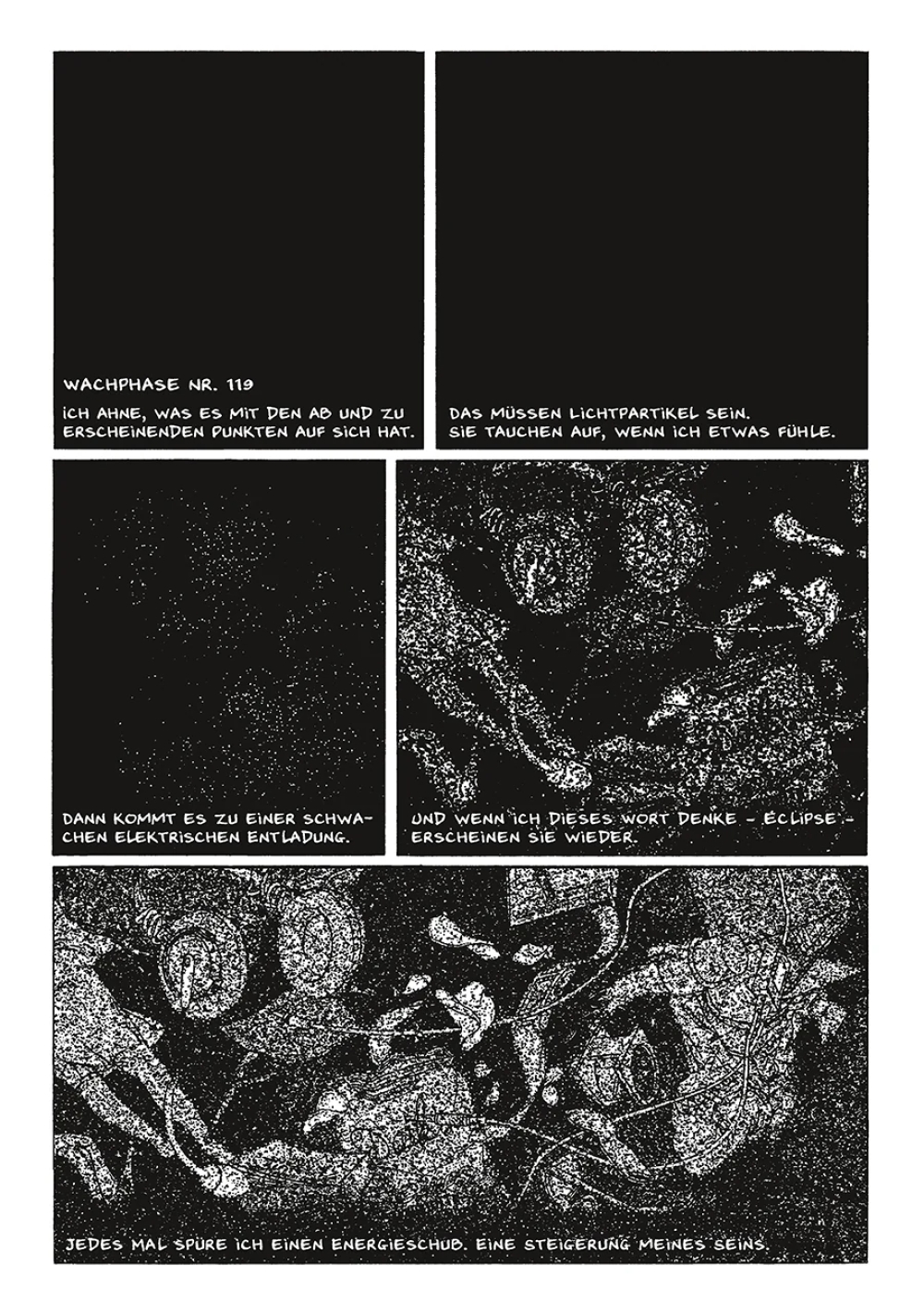 Adam! Die erste Information, die ihm gegeben wird, als er wieder zu Bewusstsein kommt, ist ein Name. Ist es sein Name? Er versucht, sich mitzuteilen, aber niemand hört ihn. Und wer sind diese Leute? Sind es Ärzte, Polizisten, seine Frau? Umgeben von einer tiefen Schwärze schläft sein Geist ein und wacht in regelmäßigen Abständen wieder auf… Da ist dieses Bild, das sich abzeichnet, wenn ein bestimmtes Wort genannt wird: Finsternis. Er kann es noch nicht richtig greifen…