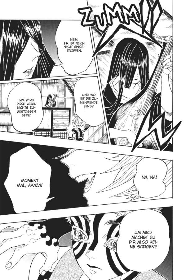 Zum ersten Mal in über hundert Jahren sind Lücken in den Reihen der Zwölf Dämonenmonde entstanden. Voller Zorn entsendet Kibutsuji die Überlebenden auf eine neue, tödliche Mission. Währenddessen begibt sich Tanjiro auf die Reise, um sein schwer beschädigtes Schwert reparieren zu lassen. Doch noch ahnt er nicht, dass seine Feinde ihm bereits auf den Fersen sind …