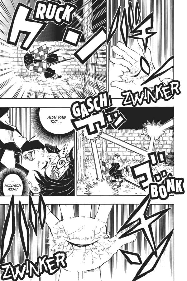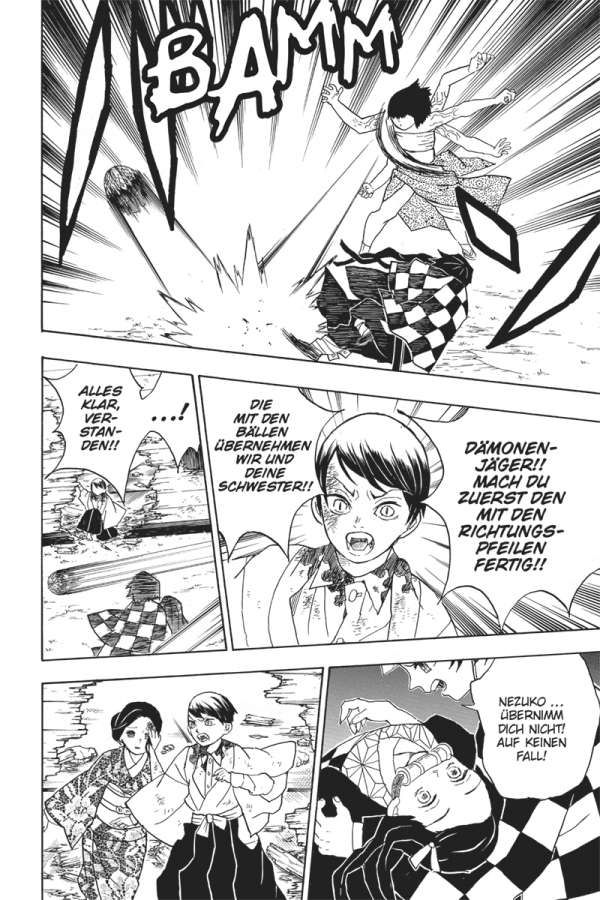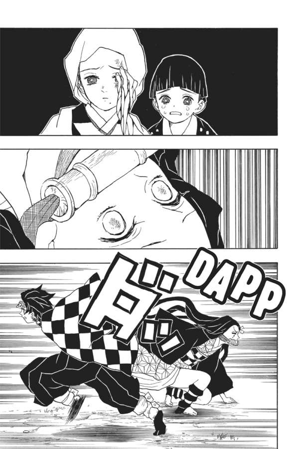 Auf der Suche nach einer Spur des Oni, der ihre Familie ermordet hat, treffen Tanjiro und Nezuko auf zwei mächtige Oni, die mit tödlichen, magischen Waffen zum Angriff übergehen. Selbst mit der Hilfe von Tamayo und Yushiro sind diese Gegner der Demon-Slayer-Truppe weit überlegen. Doch Tanjiro kann nicht aufgeben! Denn ein Sieg würde ihn endlich dem Oni Kibutsuji näherbringen – und einer Chance auf Rache …
