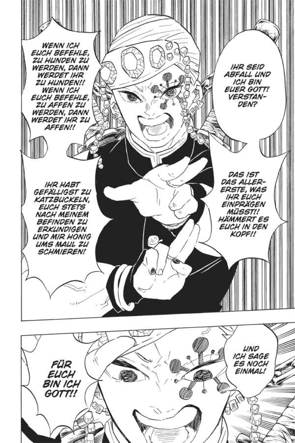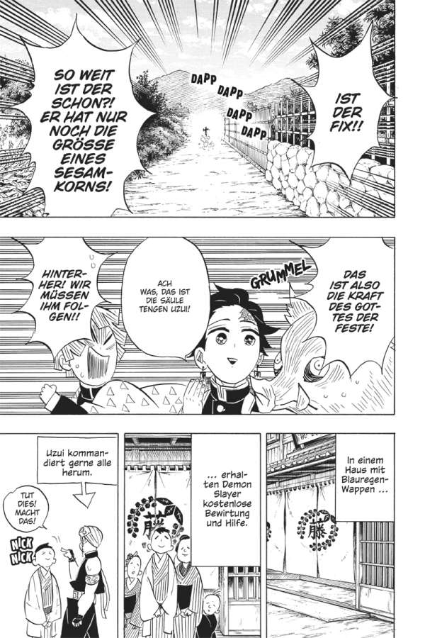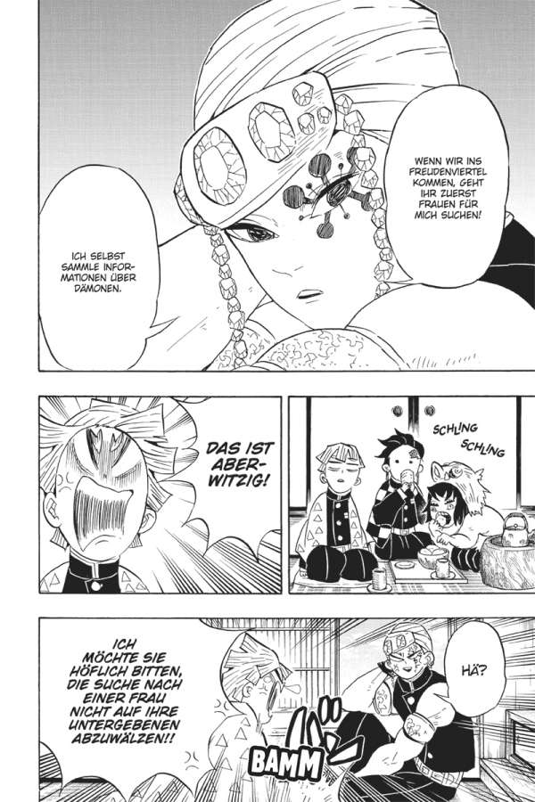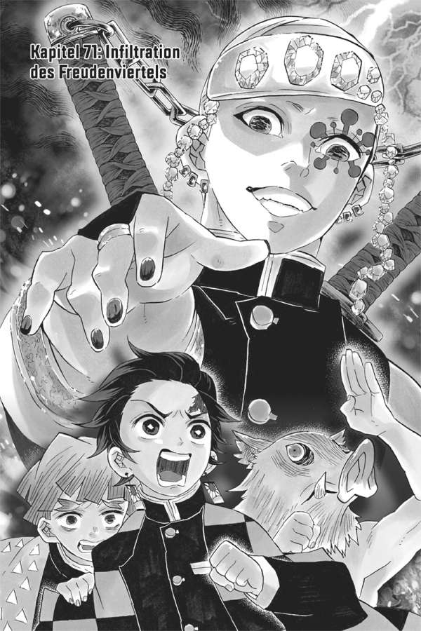 Tanjiro und seine Freunde begleiten den Demon Slayer Tengen Uzui in ein Vergnügungsviertel. Dort sollten seine Spione eigentlich Informationen zu einem Dämon sammeln … bis sie alle spurlos verschwanden. Um an Informationen zu gelangen, müssen Tanjiro und die anderen zu außergewöhnlichen Mitteln greifen! Doch der Dämon ist ihnen bereits auf den Fersen …